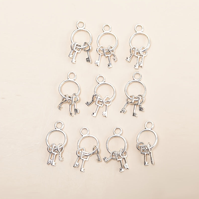10pcs Bunch Of Keys Silver Plated Pendants For Jewelry Making