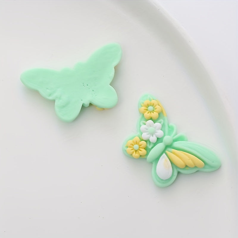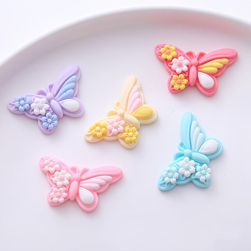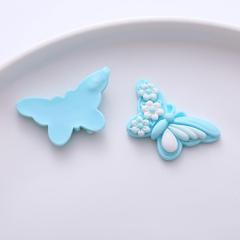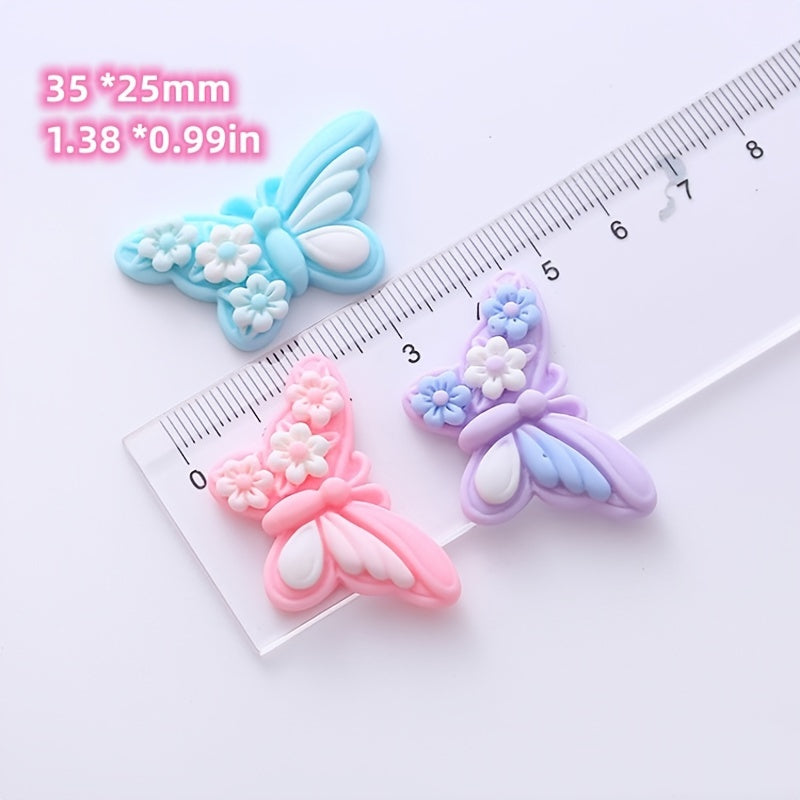10pcs butterfly-shaped resin charms for creating earrings, jewelry, hair accessories, ornaments, phone case decorations, keychains, clogs embellishments, cup accents, refrigerator stickers, and children's crafts.