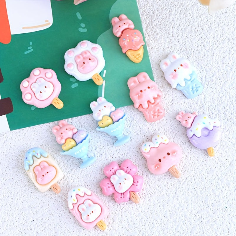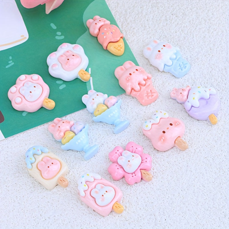 Add a touch of fun and color to your jewelry making projects with these colorful cartoon animal ice cream pendants. Perfect for DIY jewelry, art crafts, hair ornaments, and shoe decoration.