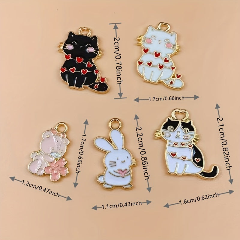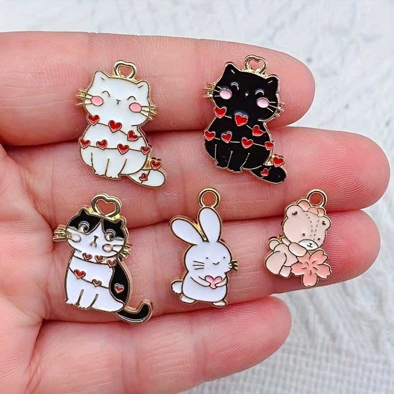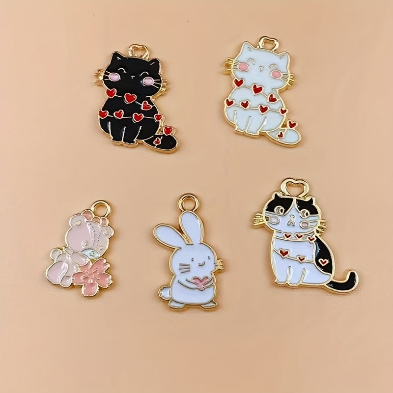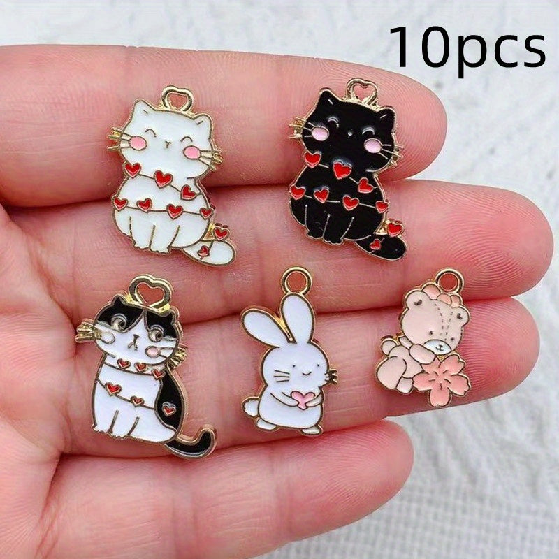 These adorable enamel pendants featuring cartoon characters like cats, rabbits, and bears are perfect for creating your own unique earrings, bracelets, necklaces, and other accessories. Let your creativity shine with this set of 10 mixed alloy pendants.