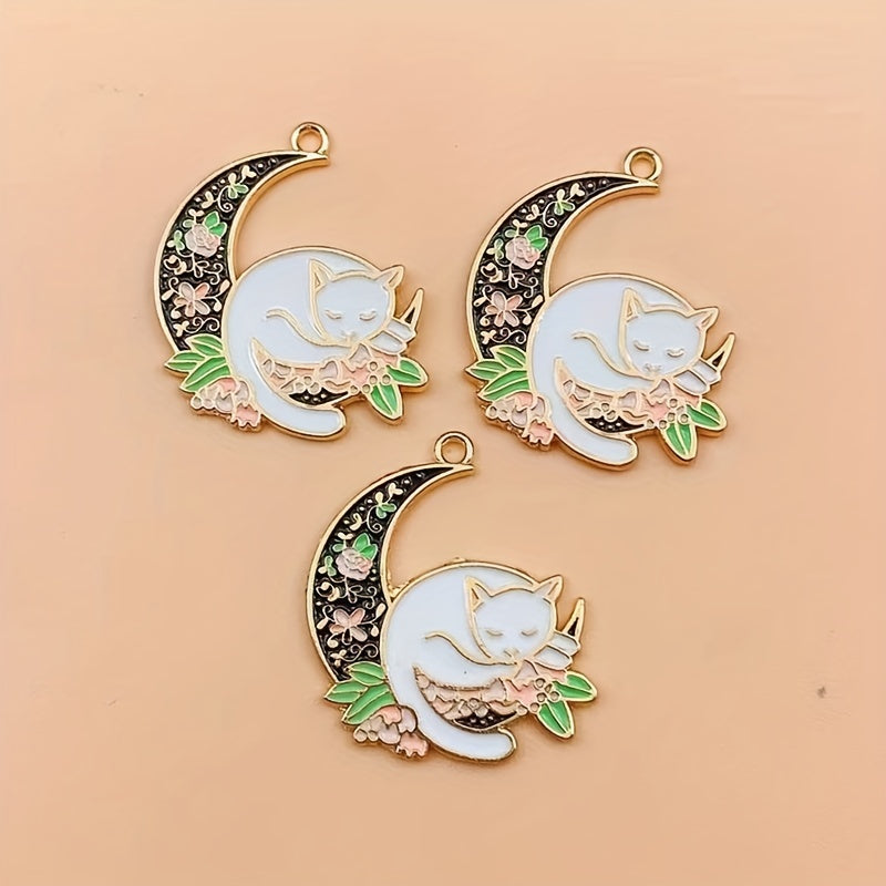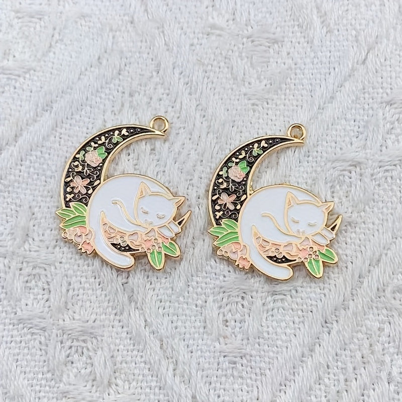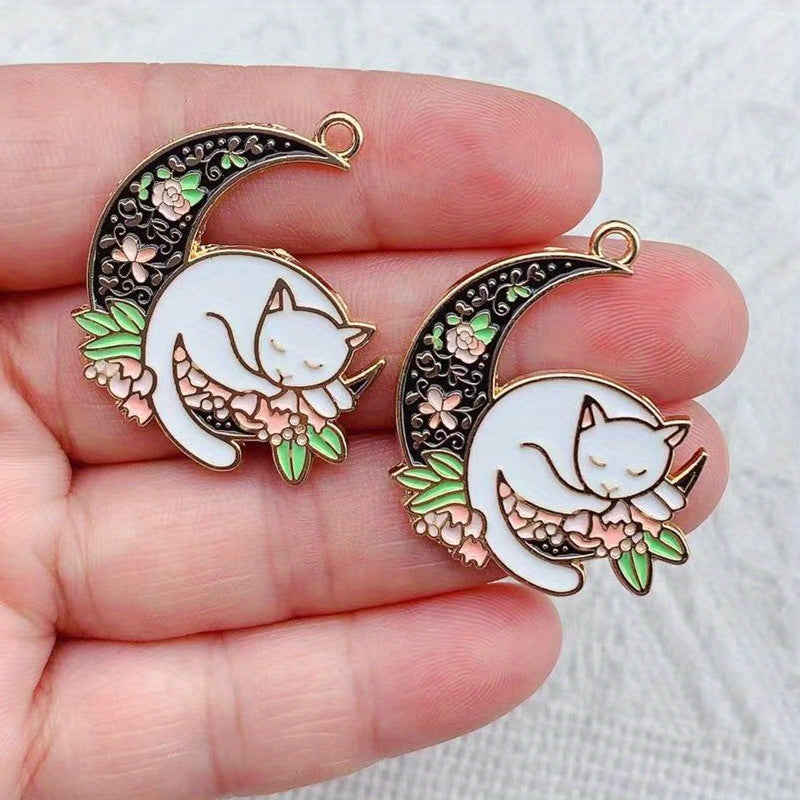 10pcs Cartoon Cat Moon Pendants DIY Jewelry Making Accessories