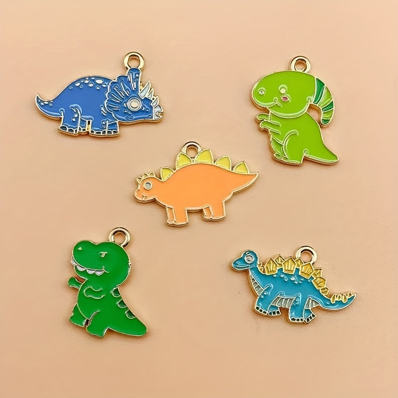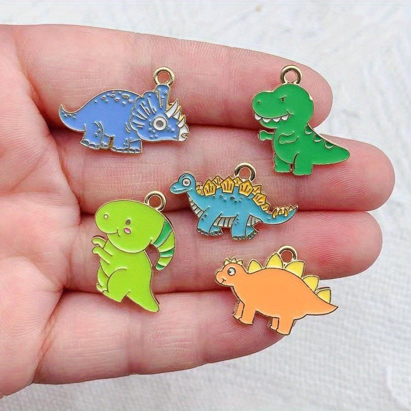 These enamel pendants feature a cute cartoon dinosaur design, perfect for creating earrings, bracelets, necklaces, and more.