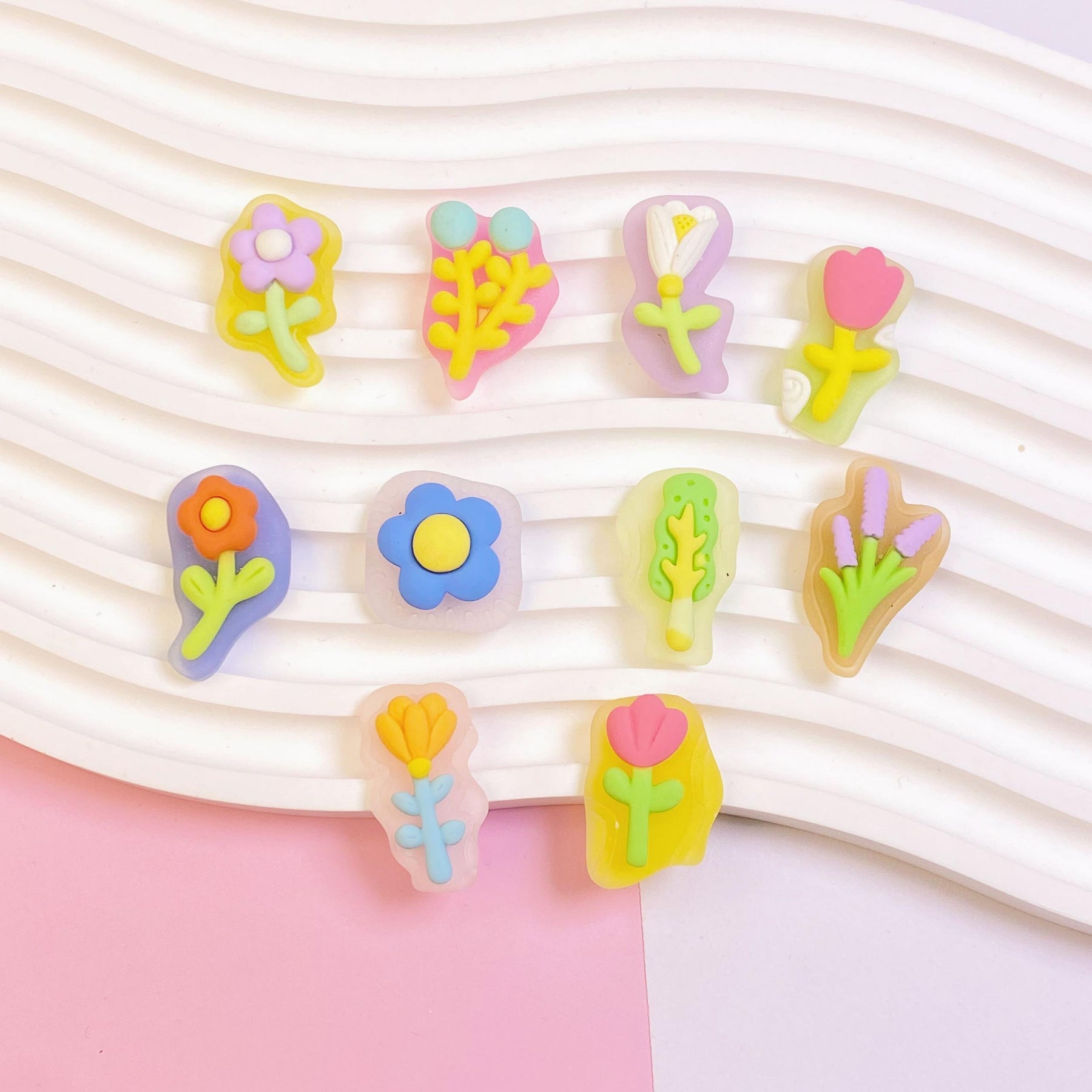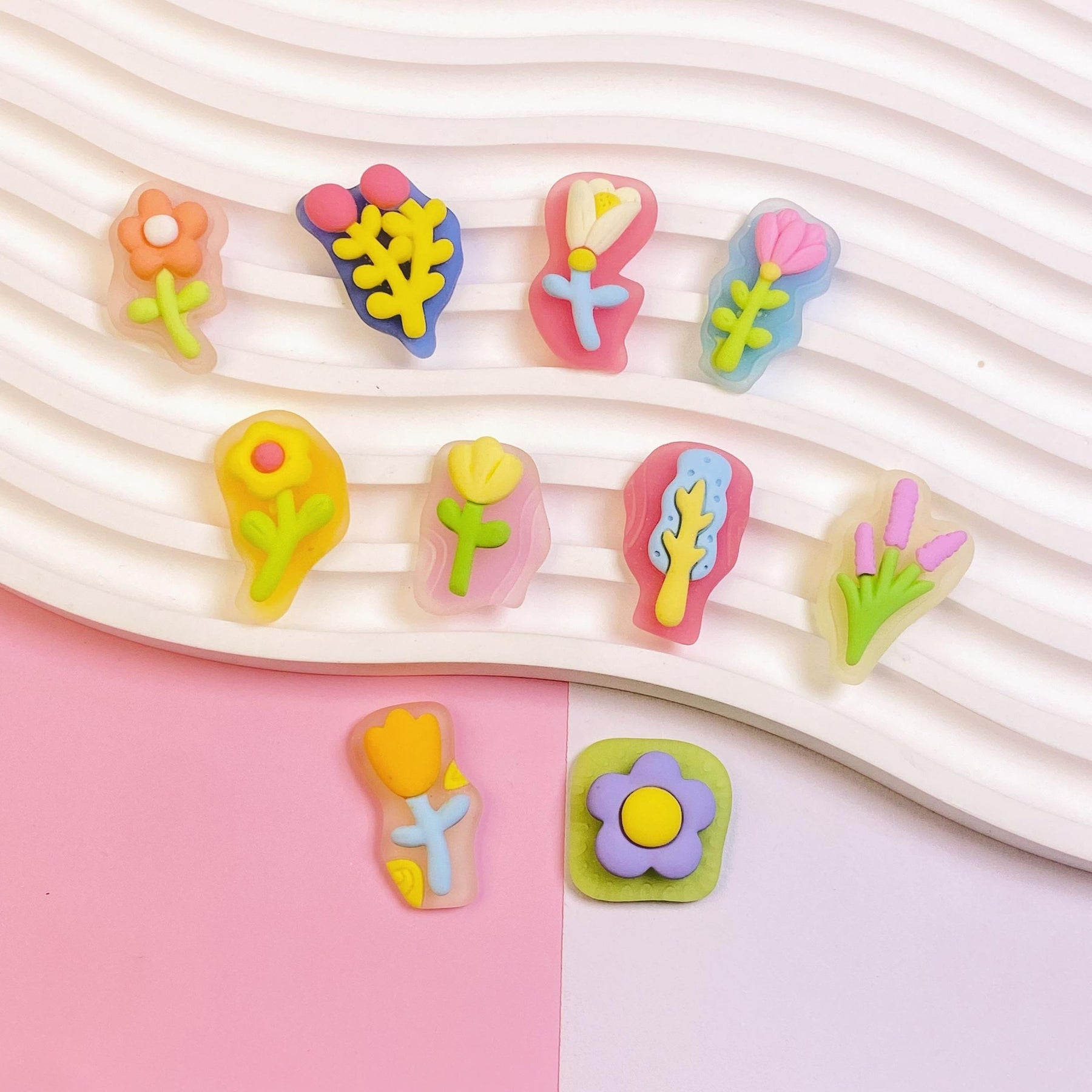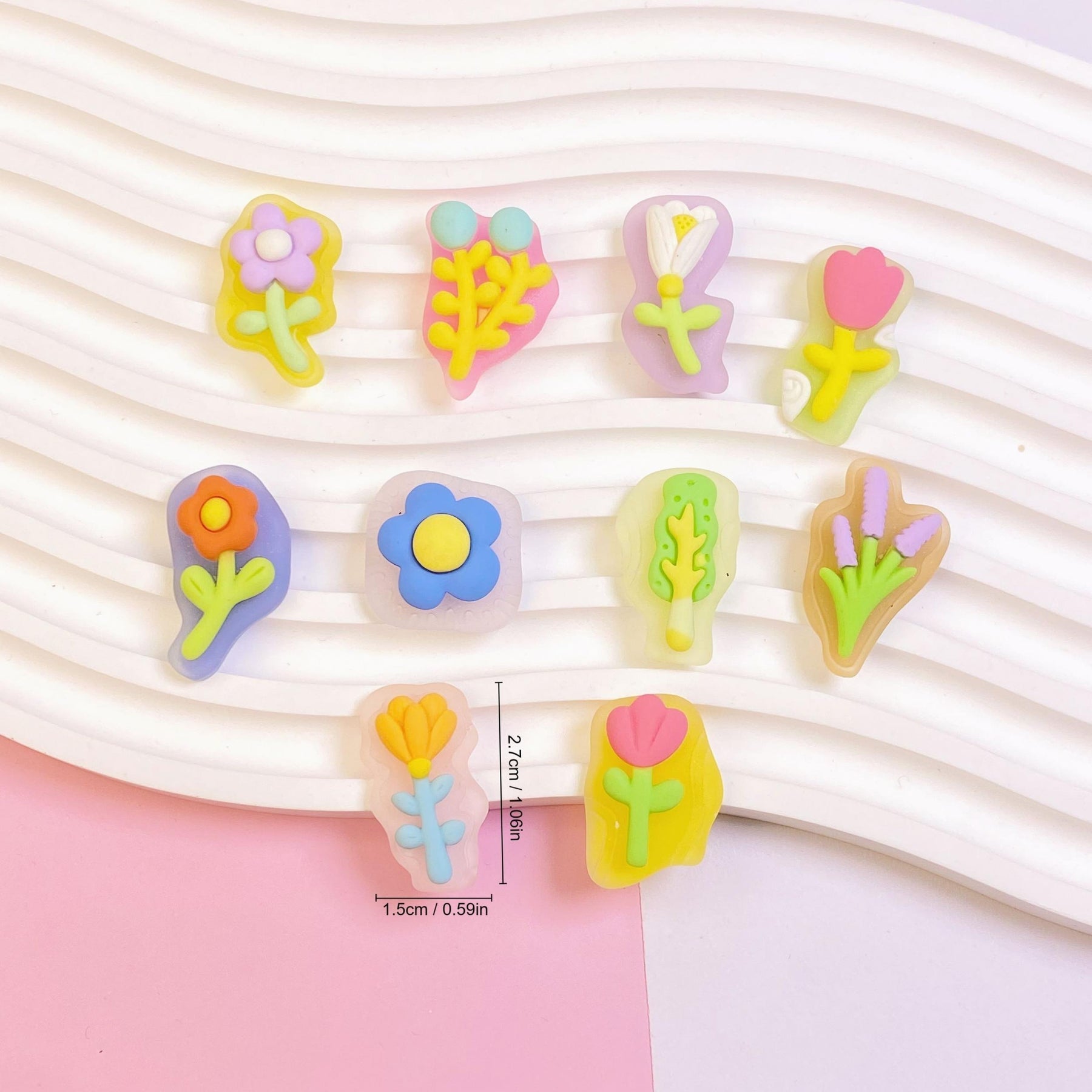 Add a vibrant touch to your crafts with these colorful cartoon flower resin charms. Perfect for hair clips, phone cases, photo frames, wall decorations, and scrapbooking.