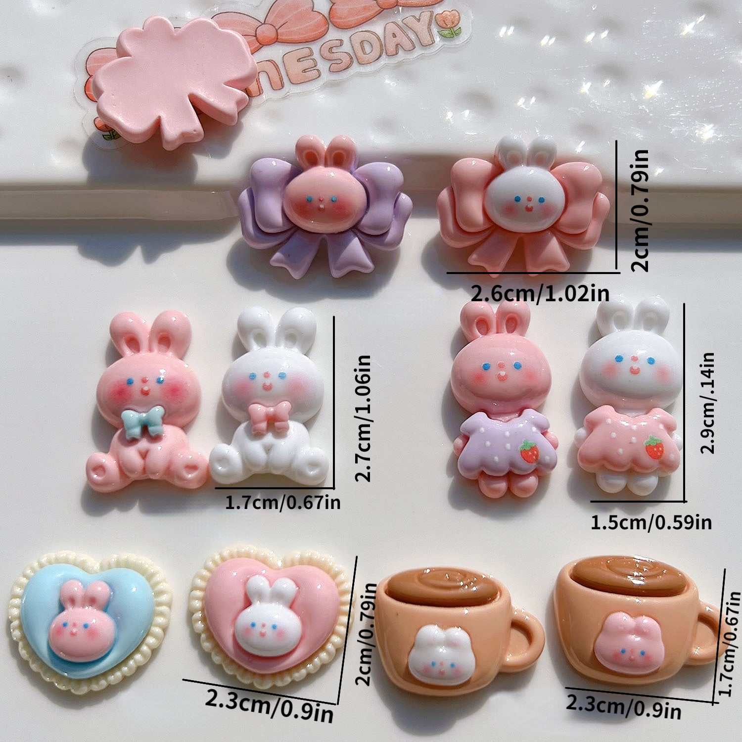 Add a touch of cuteness to your DIY projects with these 10pcs cartoon rabbit resin charms. Perfect for hair clips, phone cases, and other embellishments.