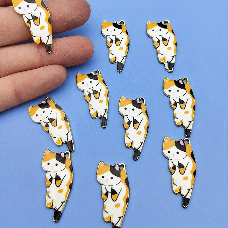 These charming cat shape charms are perfect for creating unique necklaces, bracelets, and earrings. Made of zinc alloy with golden plating and enamel detailing.