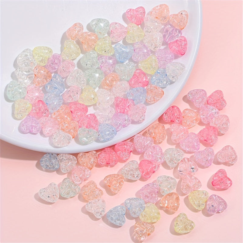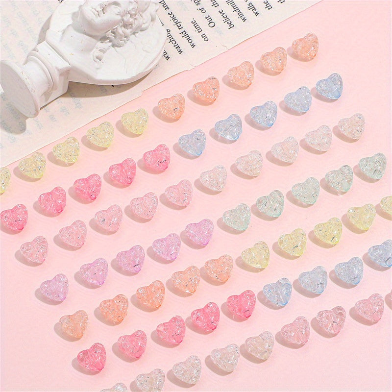 These vibrant heart-shaped beads are perfect for creating earrings, bracelets, and necklaces. Each bead has a unique crackle glass pattern that adds a fun and colorful touch to your jewelry designs.