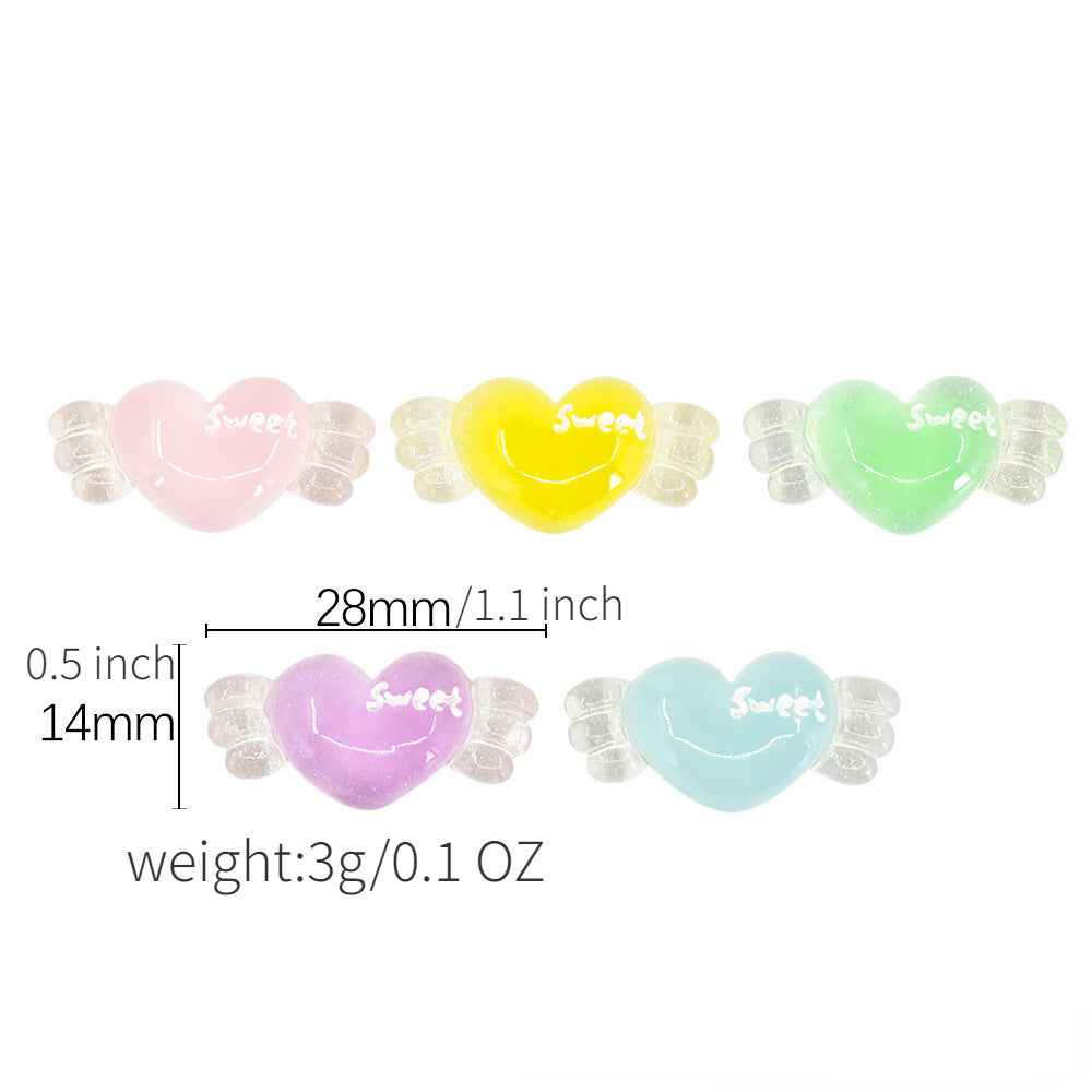 These sweet wing heart resin charms are perfect for embellishing your projects. Use them for hair clips, phone cases, photo frames, wall decorations, scrapbook crafts, and more.
