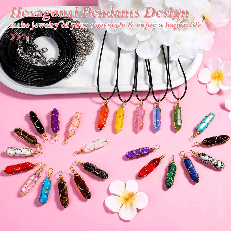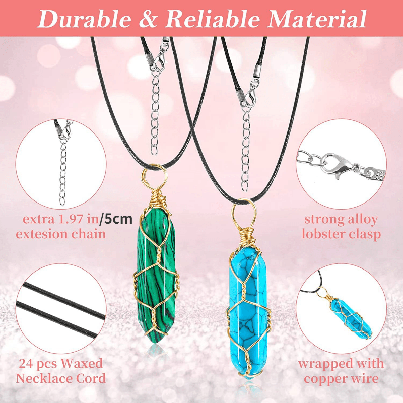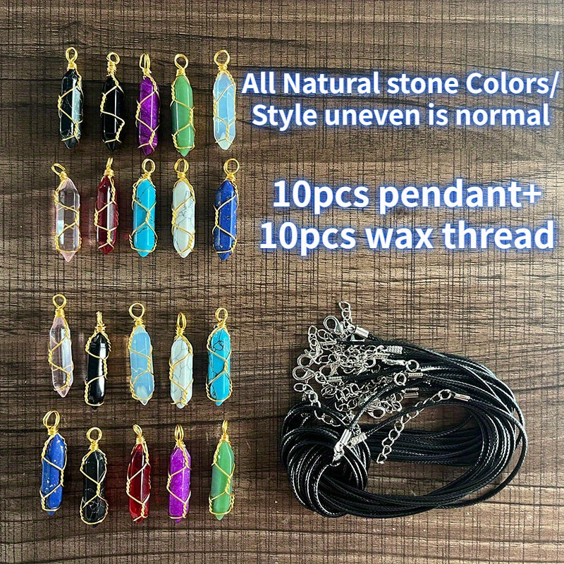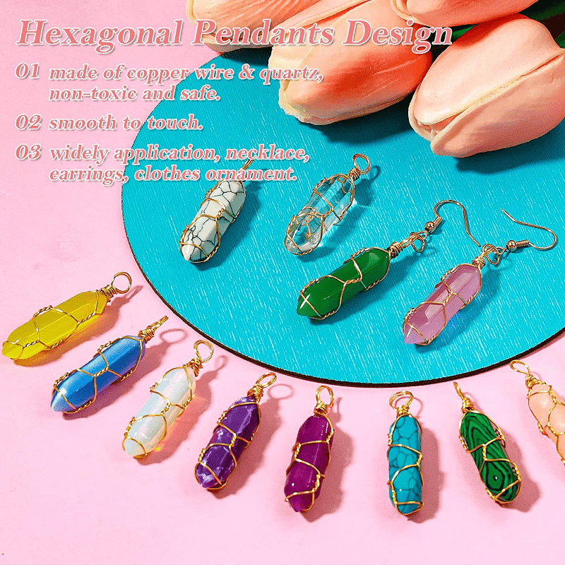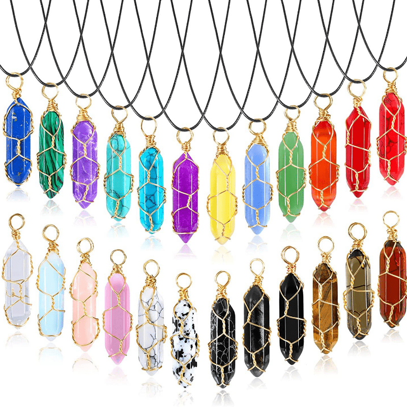 Add a touch of natural beauty to your jewelry collection with these sharp stone bullet head pendants. Each pendant is a unique and colorful piece of quartz encased in copper wire.