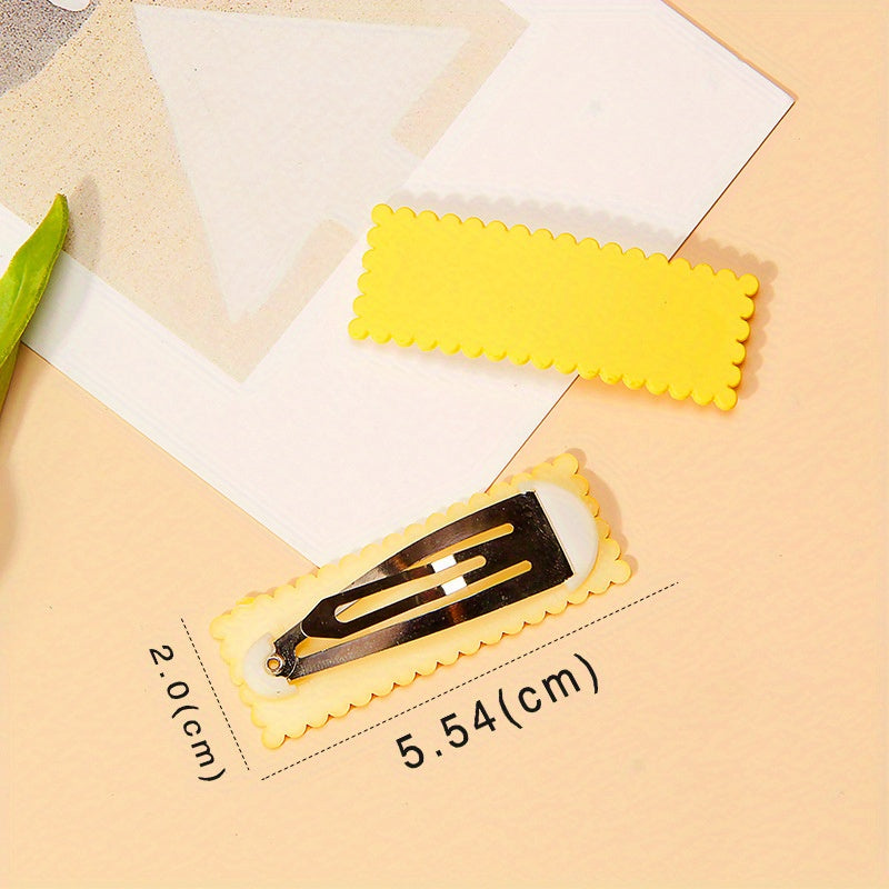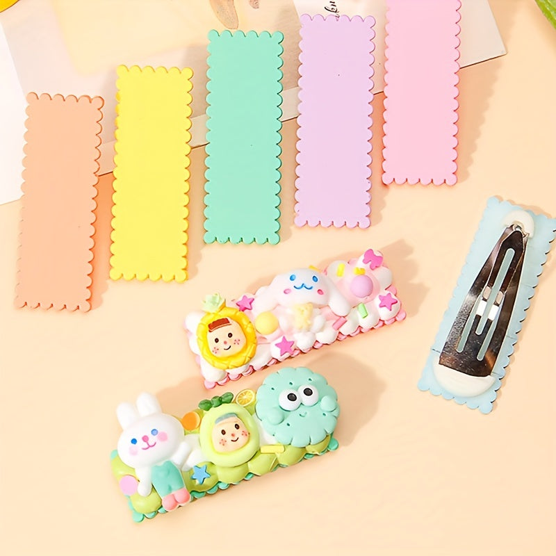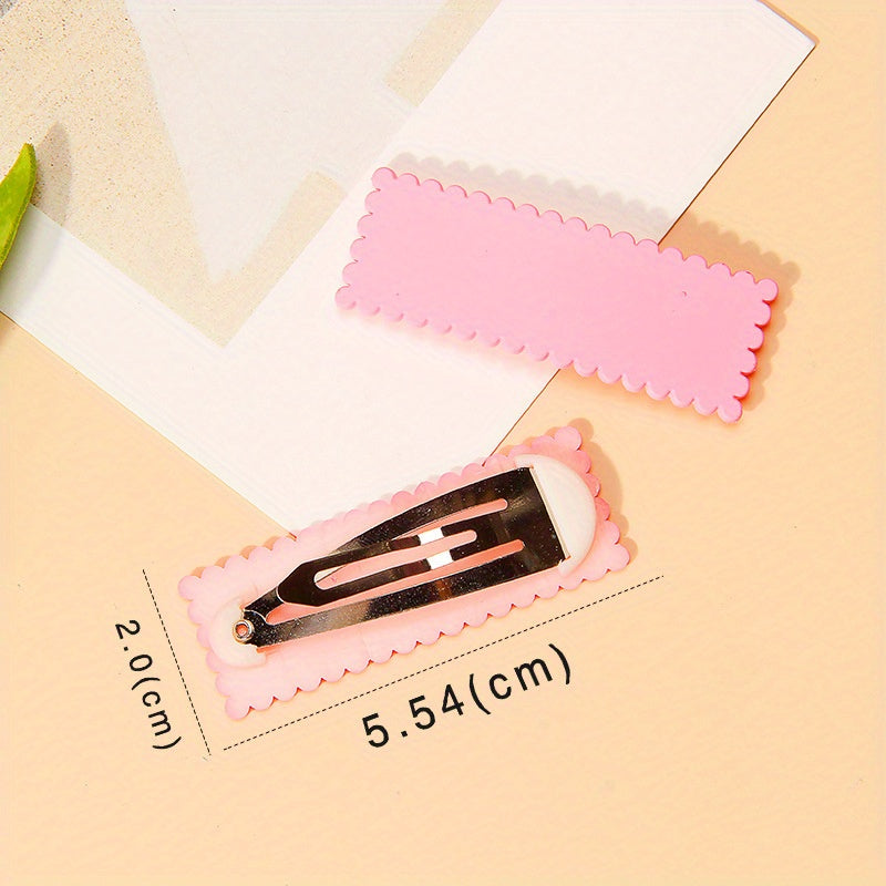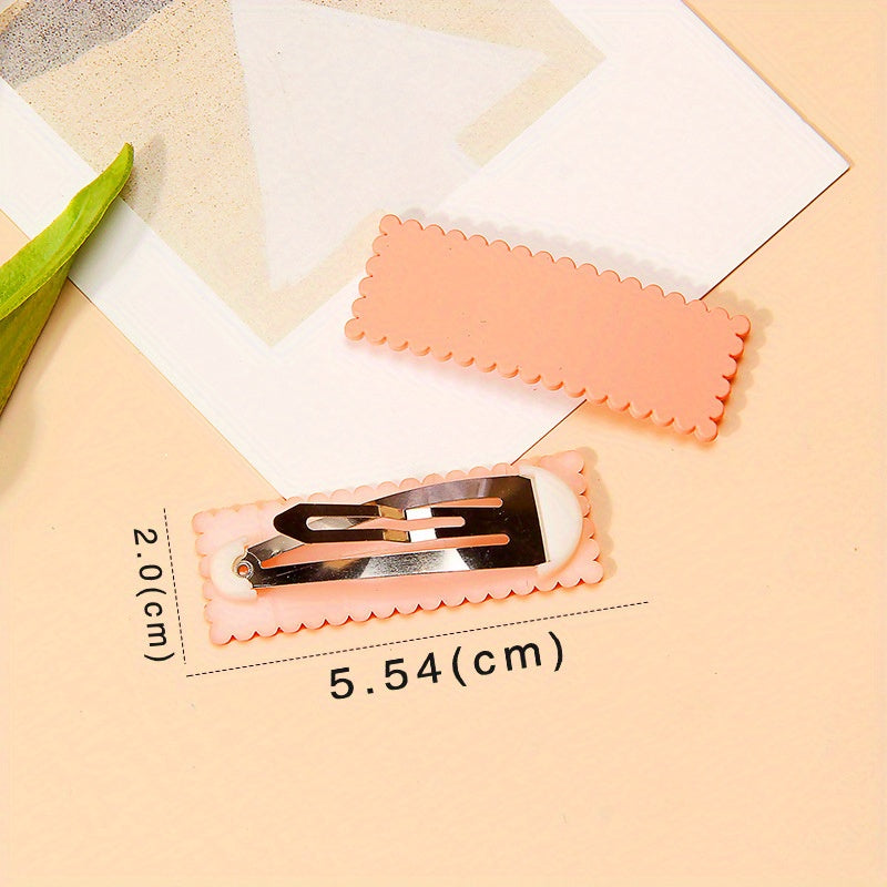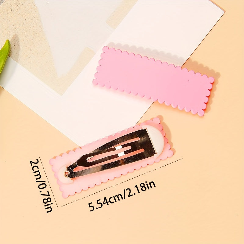 Get creative with these 10pcs cream glue hair clips that are perfect for DIY projects. Made of resin, these candy rectangular corrugated hair clips are a great addition to your hair accessory collection.