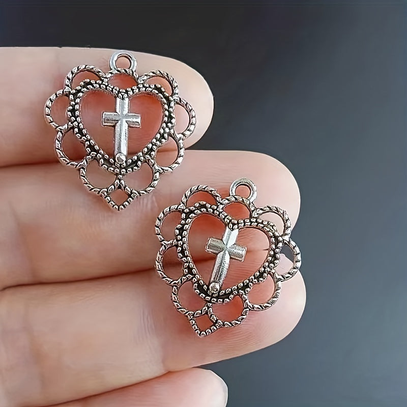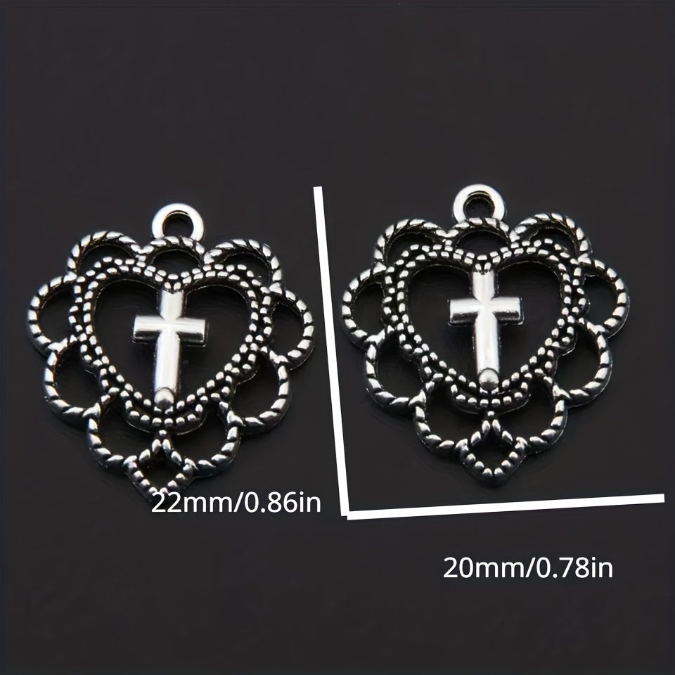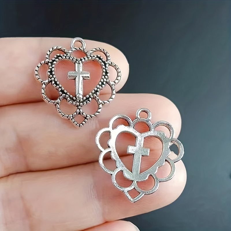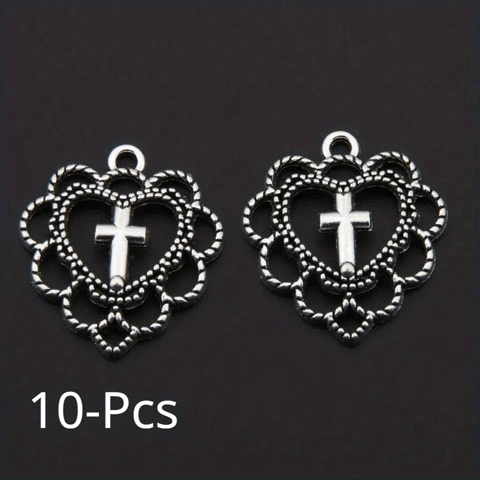 10pcs Cross Decor Alloy Hollowed Out Love Pendants Jewelry Making