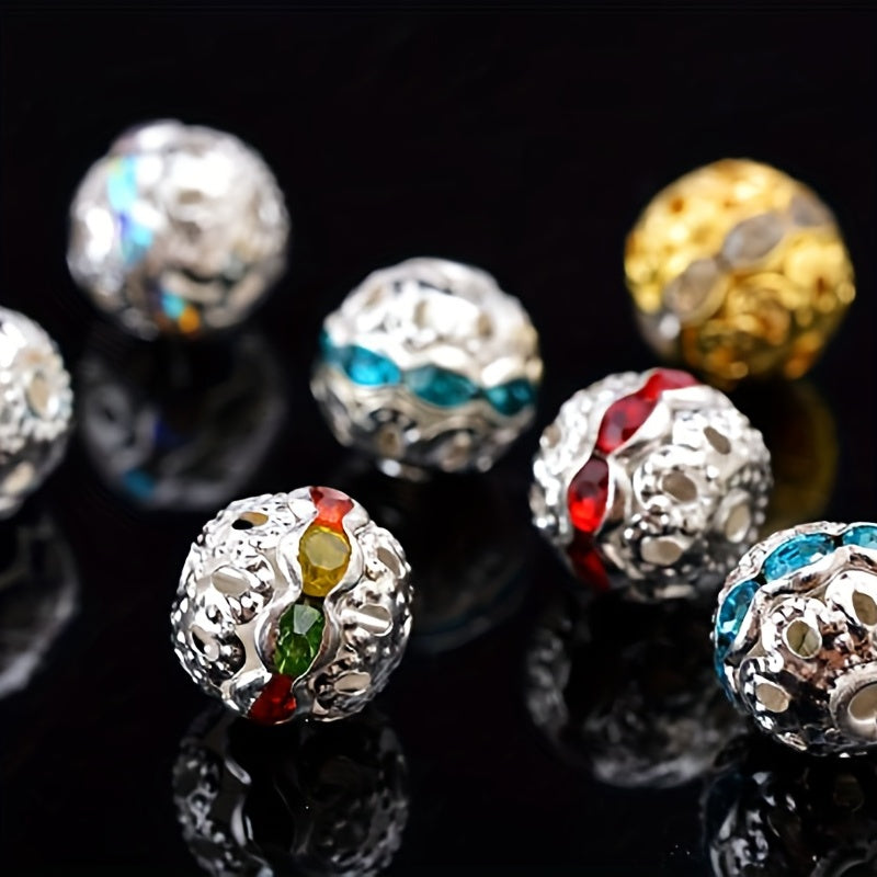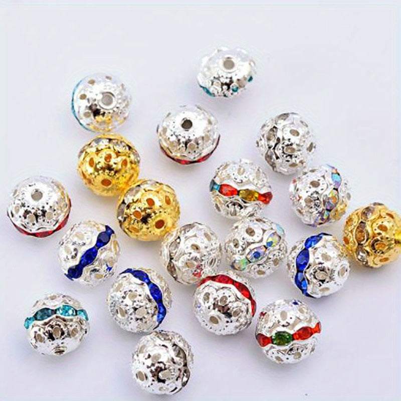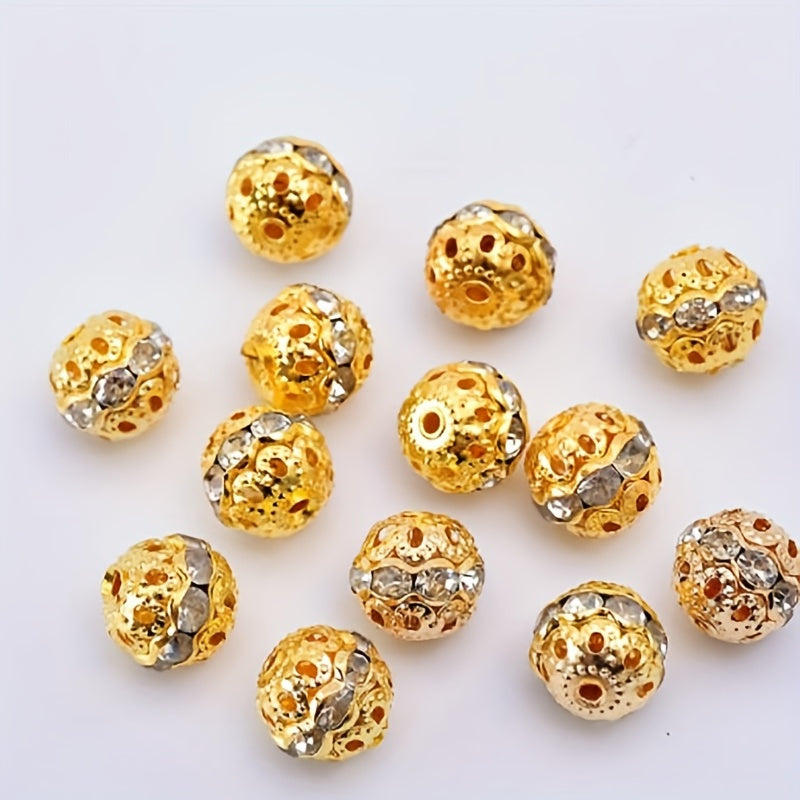 Add a touch of sparkle to your jewelry crafts with these rhinestone ball cap spacer beads. These golden plated silver beads are inlaid with artificial diamond balls and flower caps.