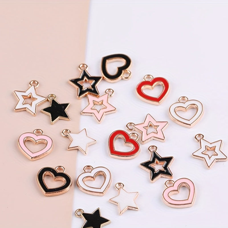 This set includes 10pcs of metal jewelry love pendant bracelets with a hollow peach heart design, perfect for creating DIY hair accessories.