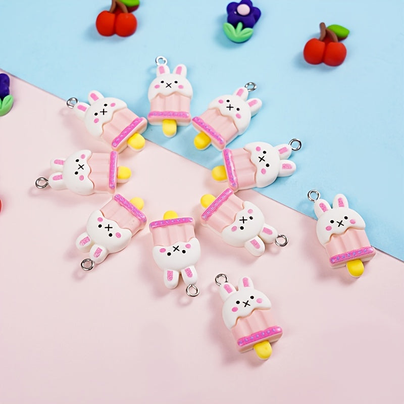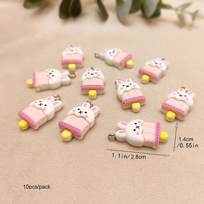 10pcs DIY Rabbit Pendant Resin Accessories Earring Phone Case Small Pendant