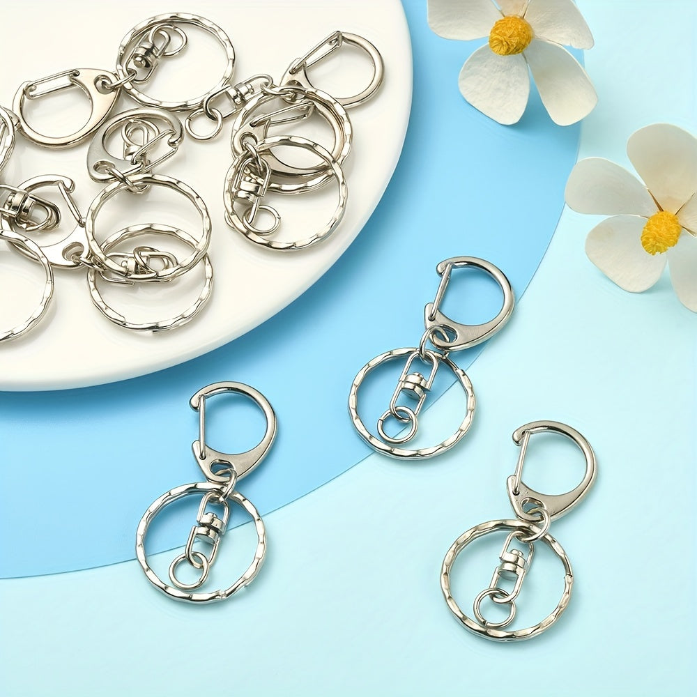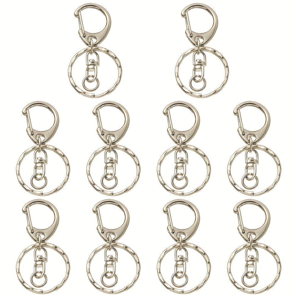 This bag contains 10 electroplated lobster clasps with a large eight character design, perfect for keychains, jewelry, and pendants. Made from zinc alloy material, each clasp measures about 50mm in length.