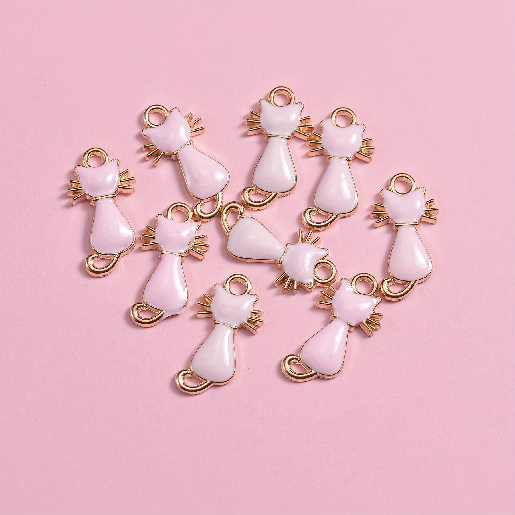 This set includes a bracelet, necklace, and stud earrings with cute enamel cat alloy pendants in pink color. Perfect for cat lovers!