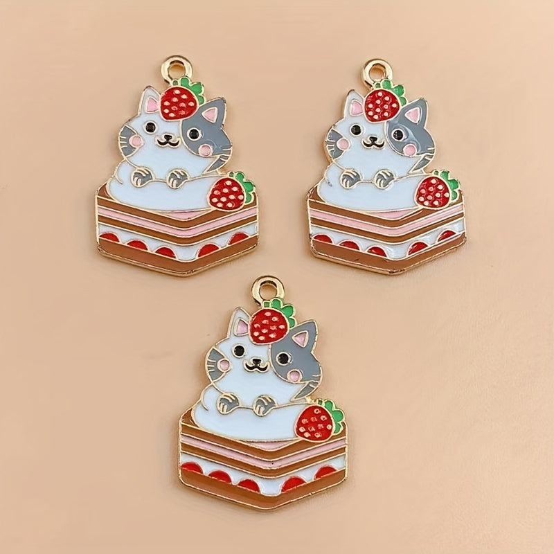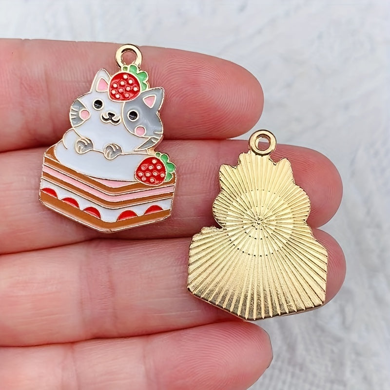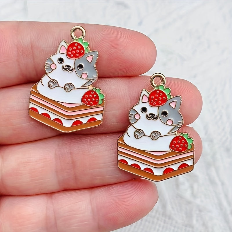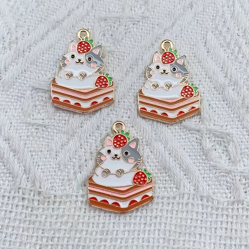 Add a sweet touch to your jewelry creations with these 10 enamel strawberry cake and cat charm pendants. Perfect for DIY bracelets and necklaces.