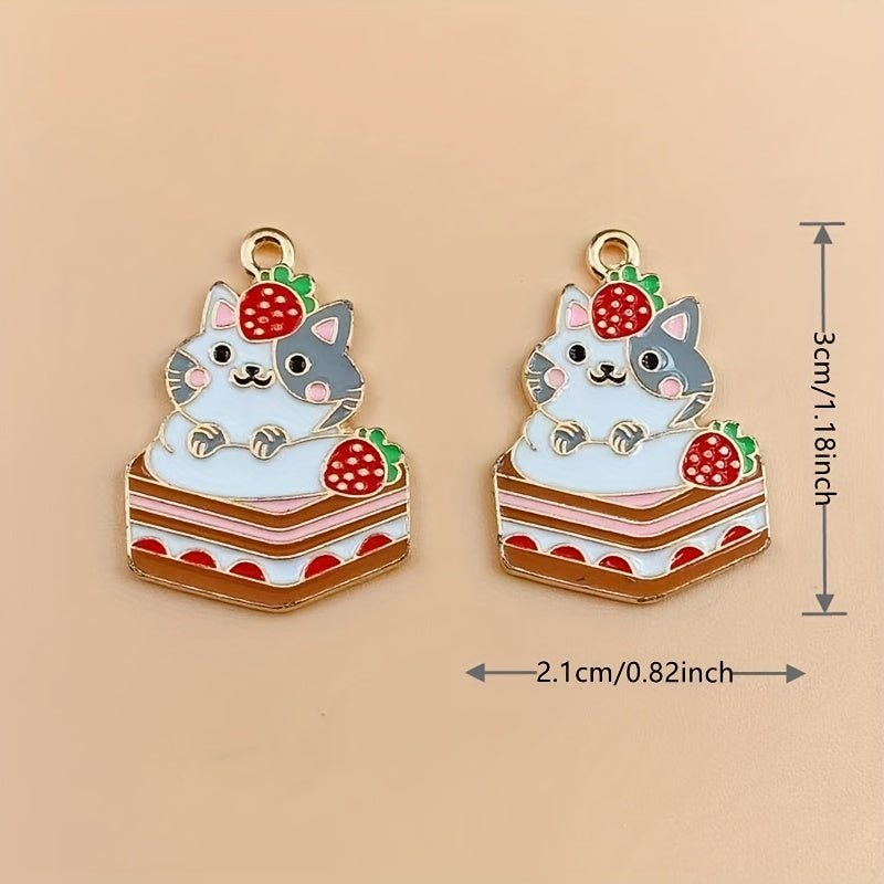 10pcs Enamel Strawberry Cake & Cat Charm Pendants DIY Bracelet Necklace