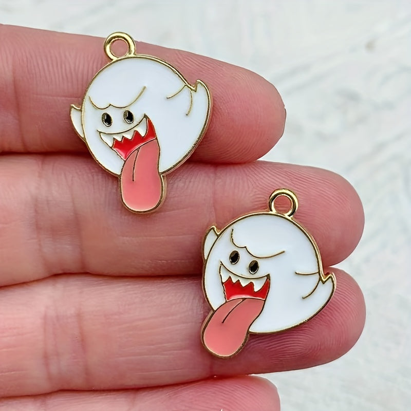 Add a spooky touch to your jewelry creations with these 10pcs cartoon ghost charms. Perfect for Halloween-themed accessories like necklaces, bracelets, earrings, and keychains.