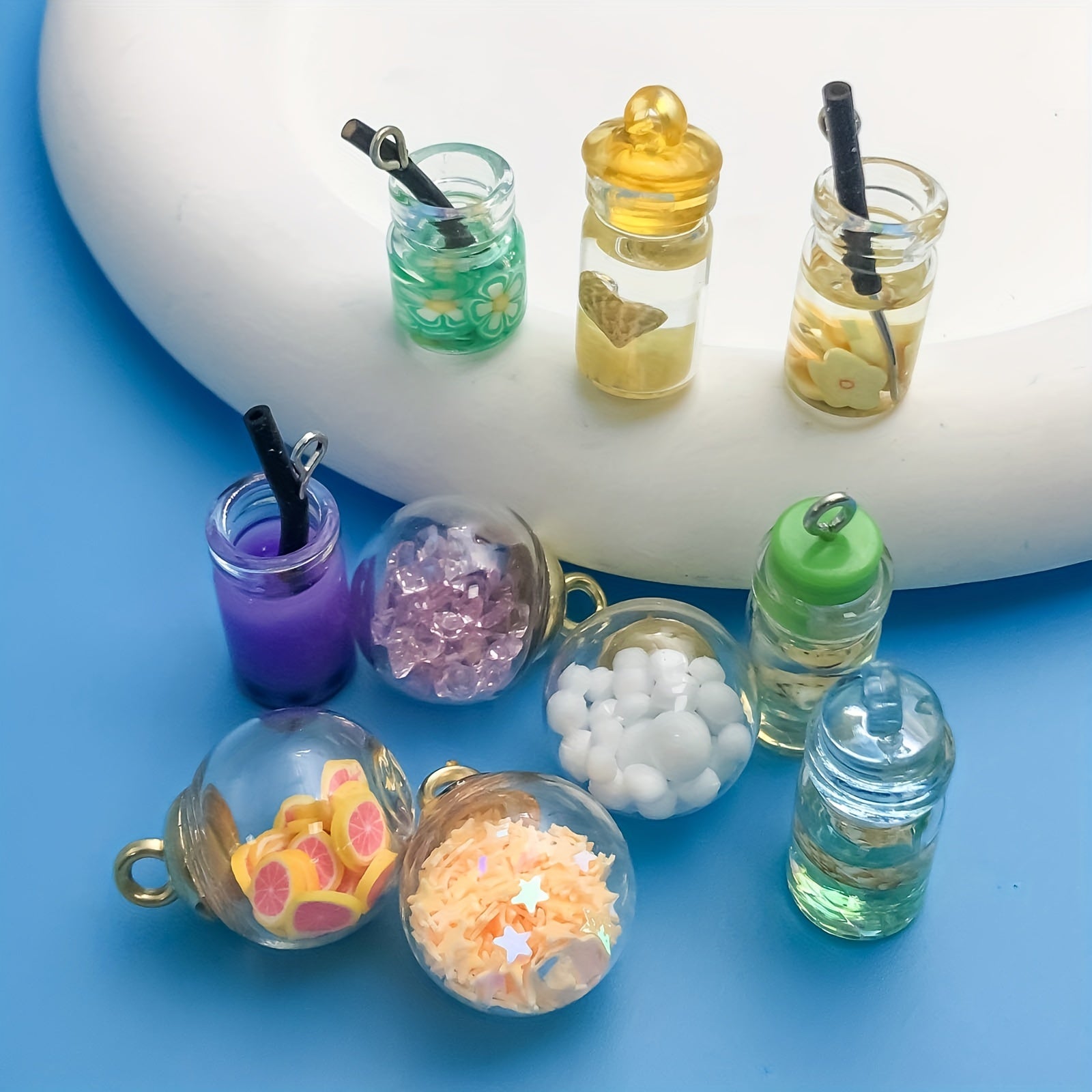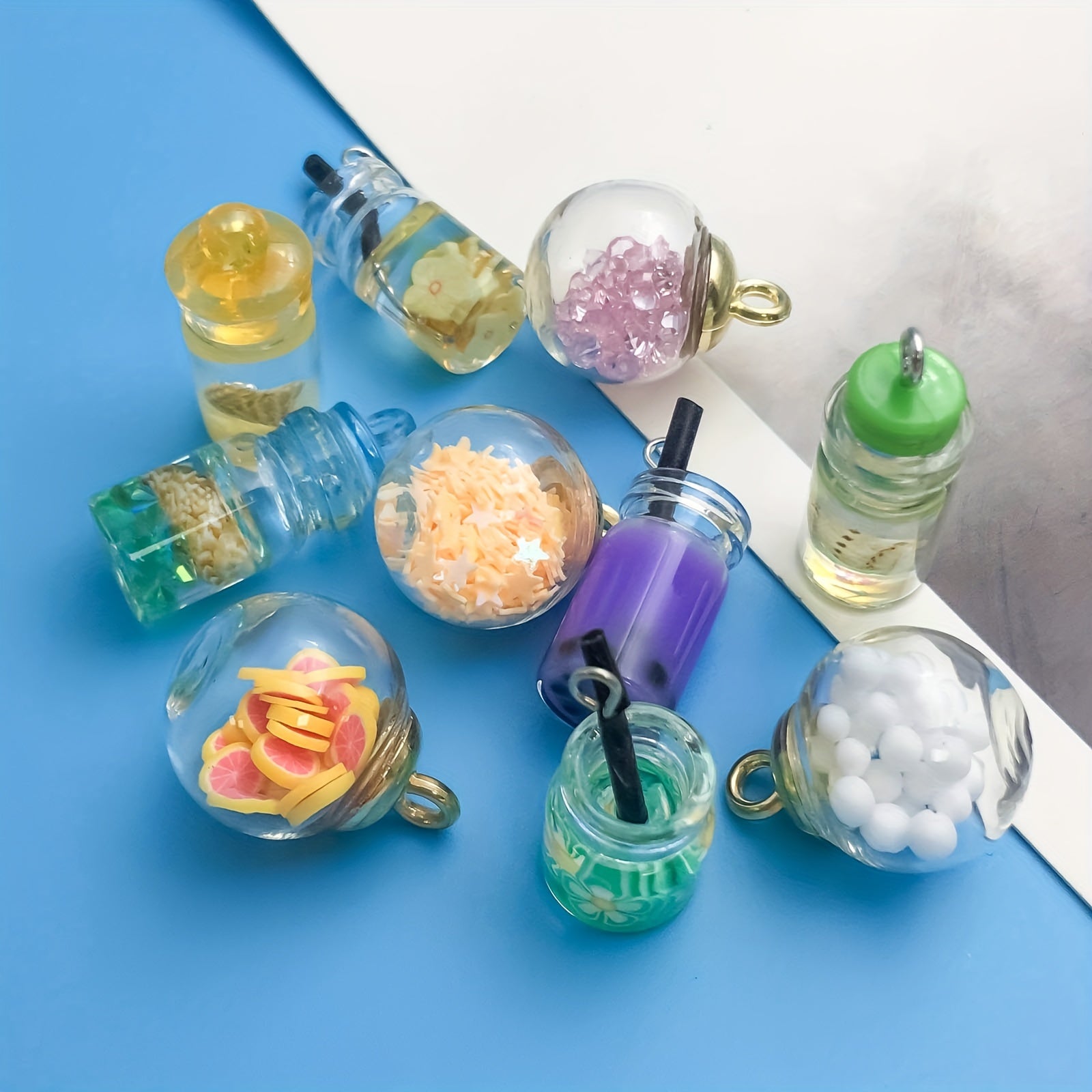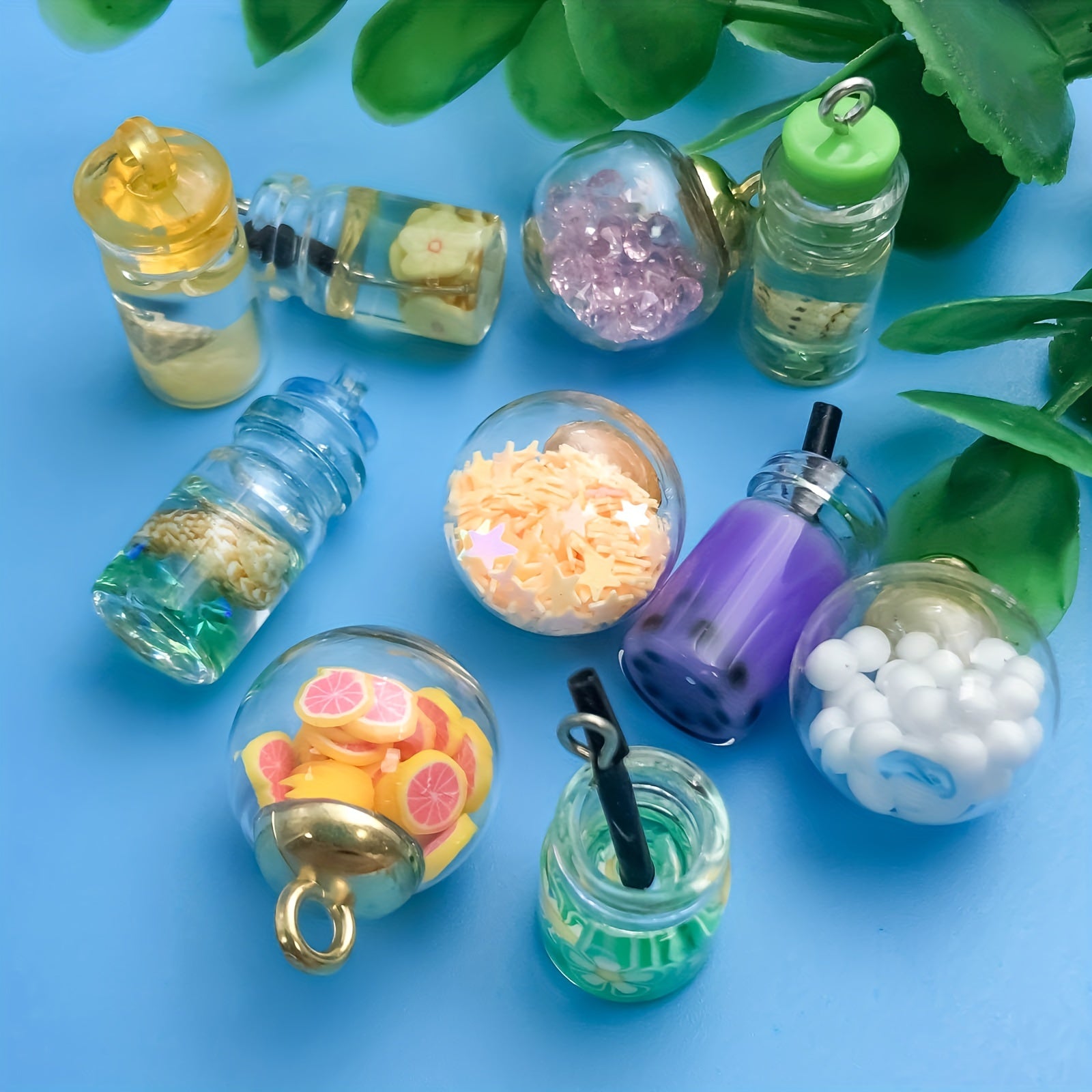 Enhance your jewelry-making projects with this 10-piece set of transparent glass ball charms. Each charm features a wishing bottle design, perfect for creating personalized necklaces, bracelets, and more.