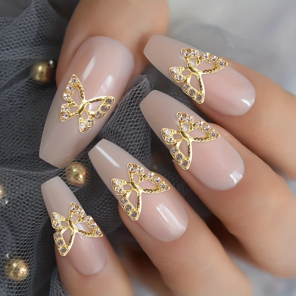 These delicate nail charms are perfect for adding a touch of glamour to your nails. They are made of golden glitter material and can be used for jewelry making or craft projects.