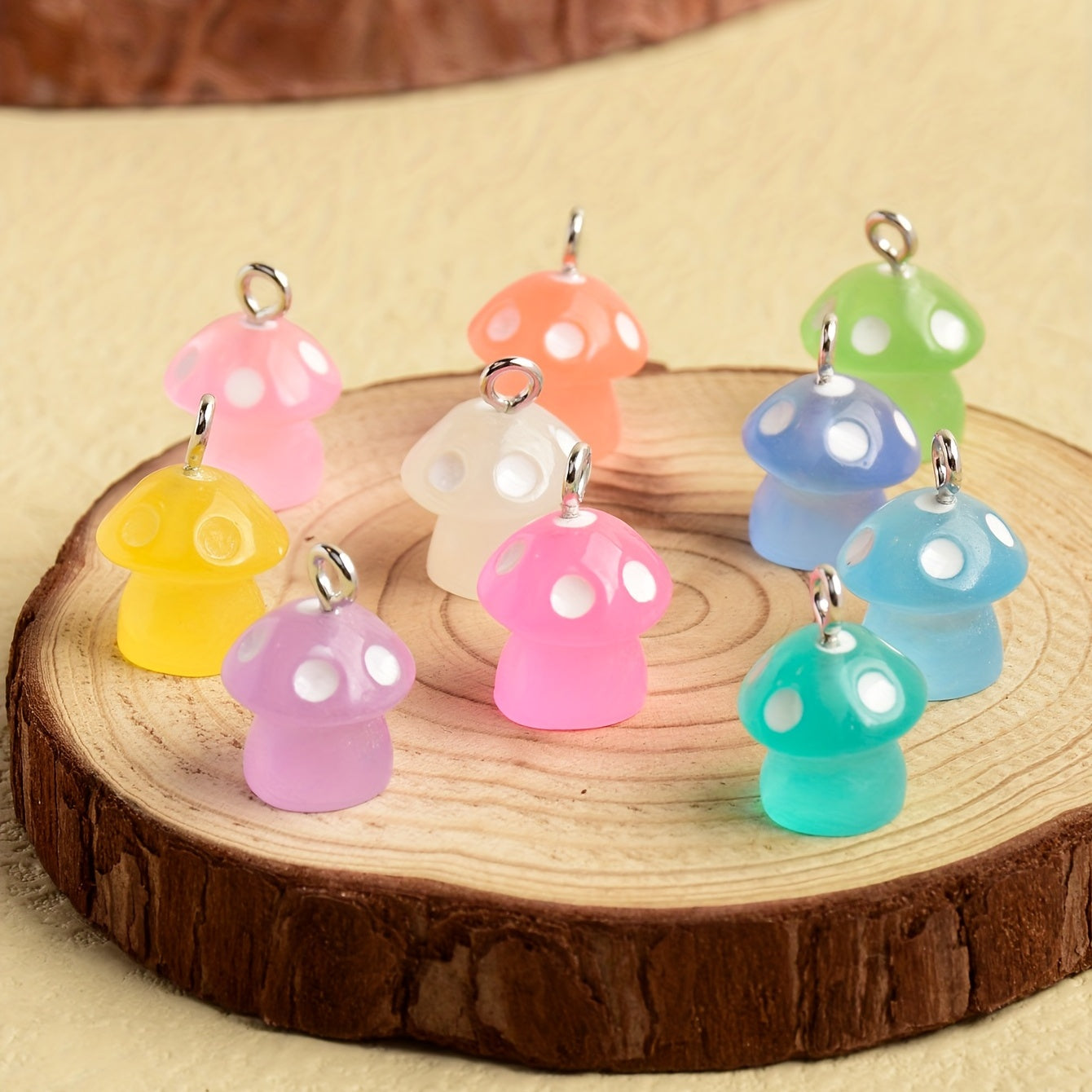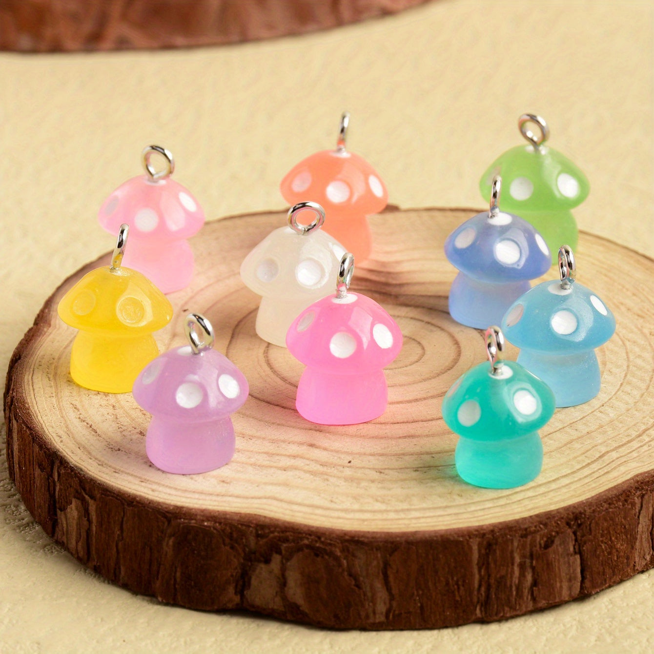 Add a touch of whimsy to your jewelry creations with these luminous mushroom pendants. Perfect for crafting unique necklaces, bracelets, and earrings.