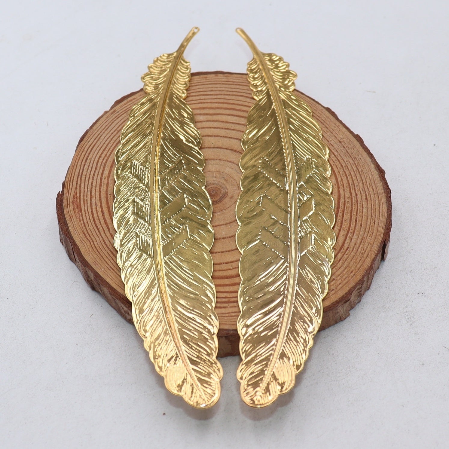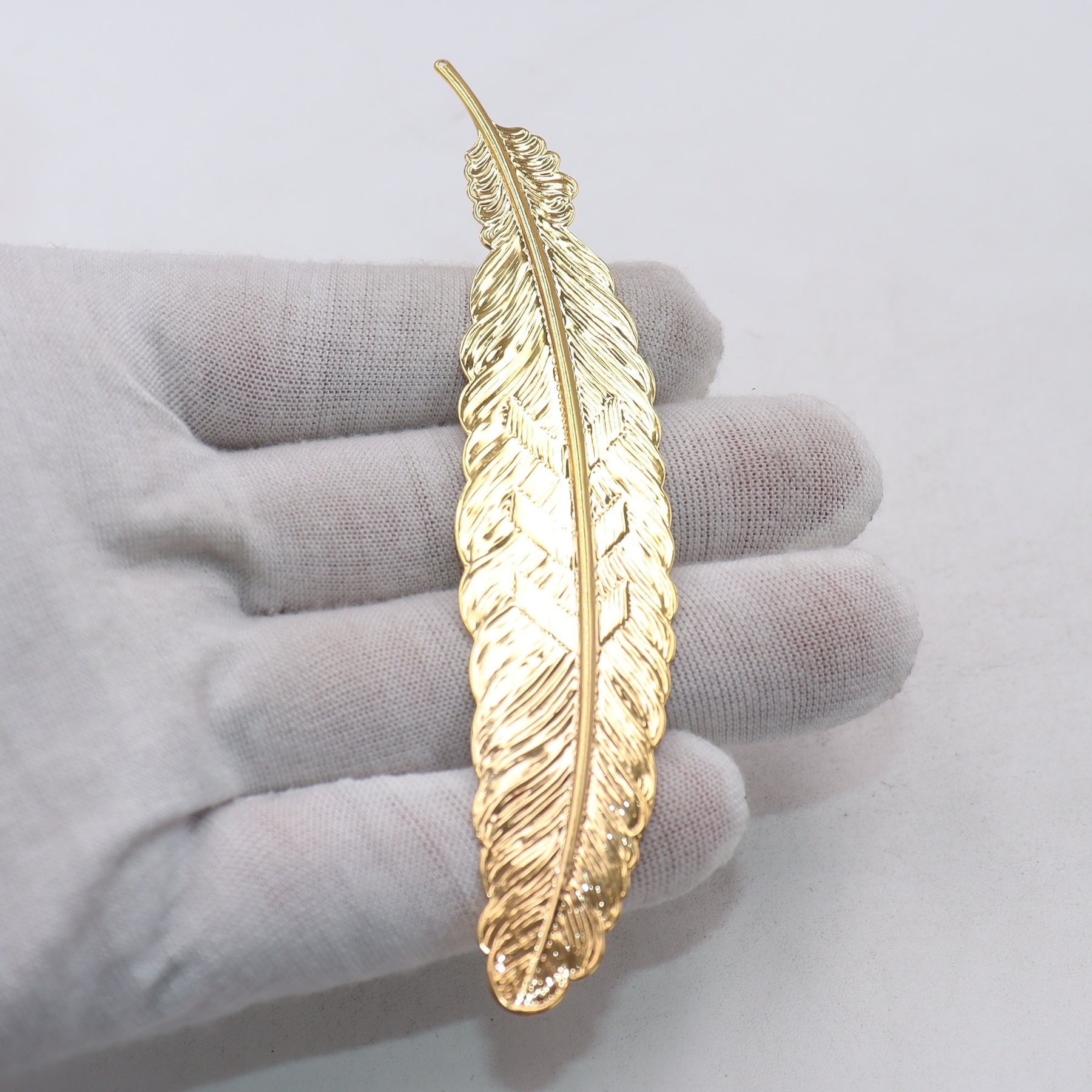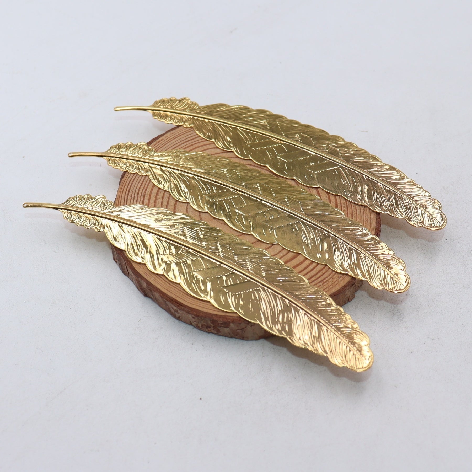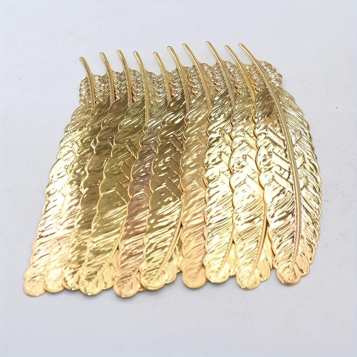 10pcs Golden Feather Copper Charm Vintage Feather Metal Bookmarks