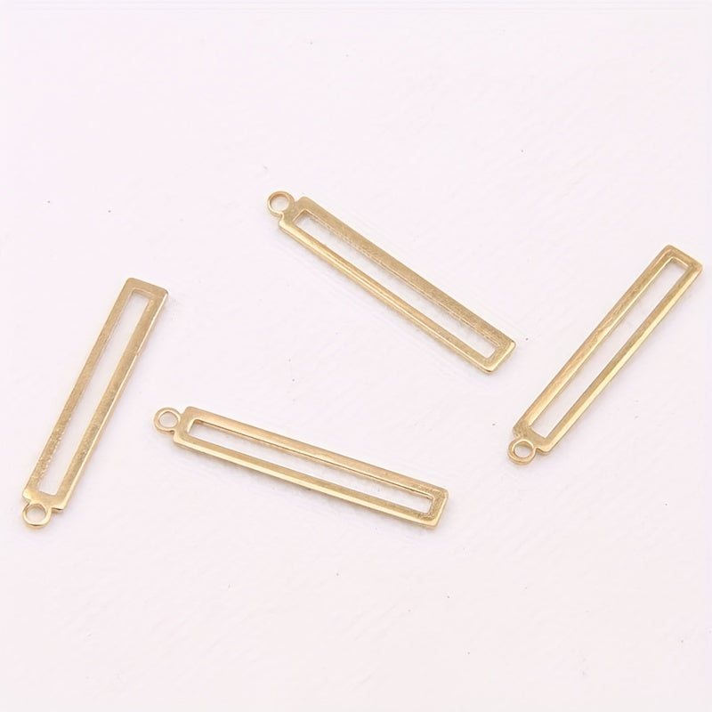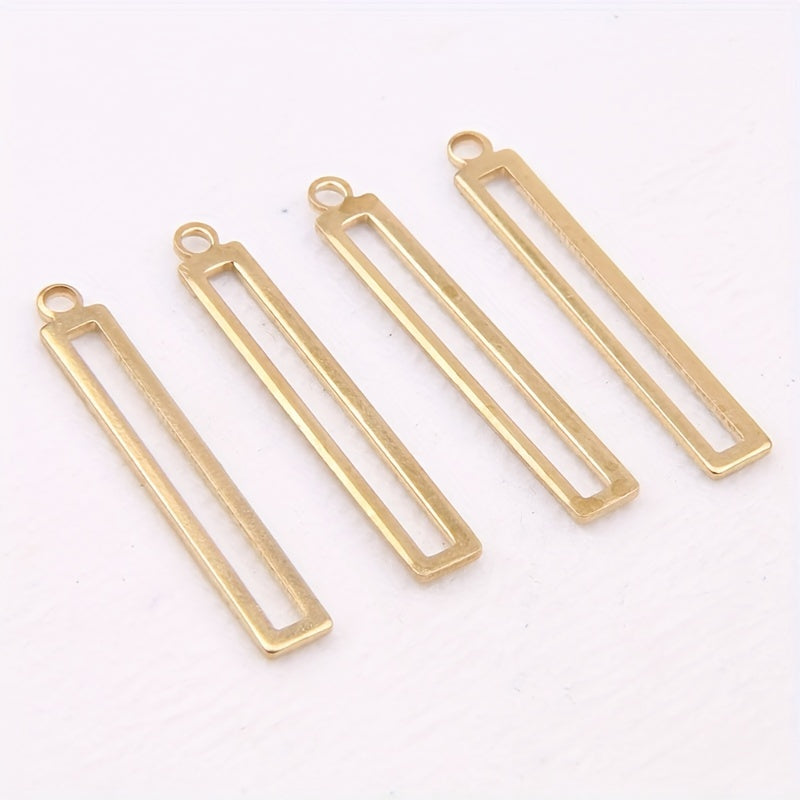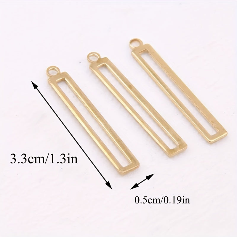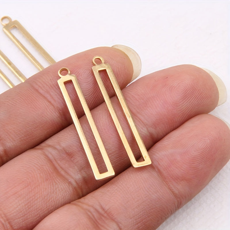 This set of 10 golden hollow rectangle copper pendants is perfect for creating your own earrings, bracelets, necklaces, and other accessories. Each pendant features a unique design that will add a touch of elegance to your handmade jewelry pieces.