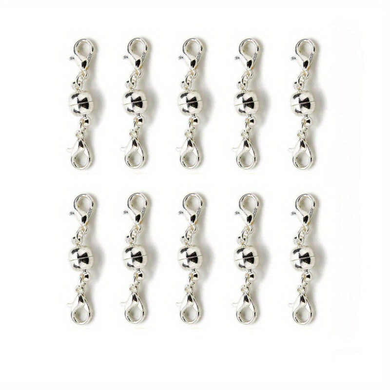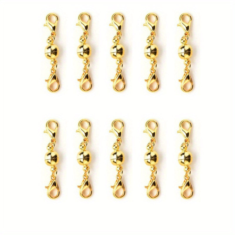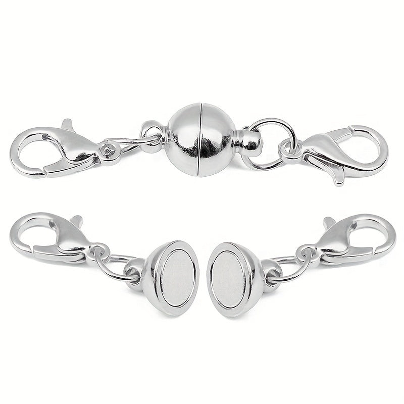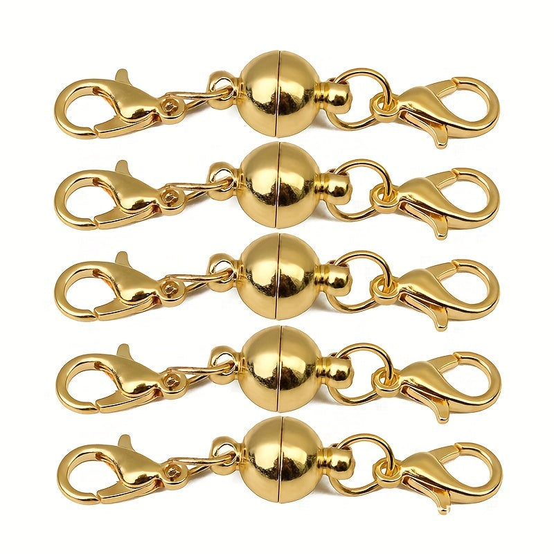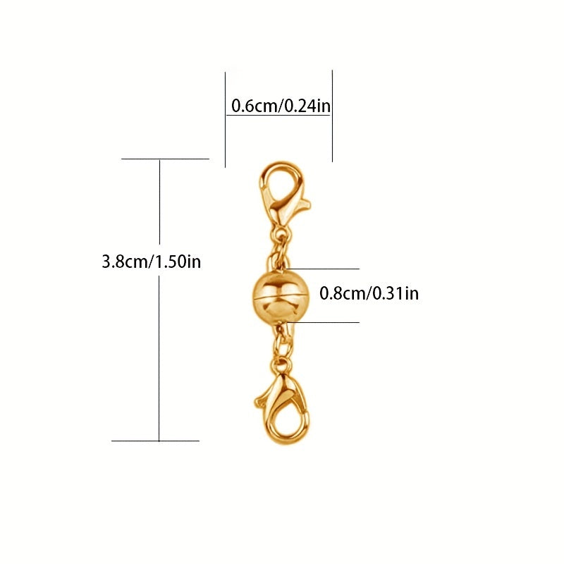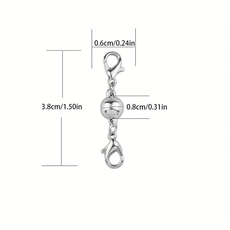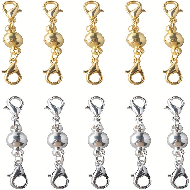 Pack of 10 spherical magnet buckle clasps made of solid copper in golden and silver colors. Ideal for DIY bracelets, necklaces, and mask connectors. Each clasp measures 8mm (0.026in) in size.