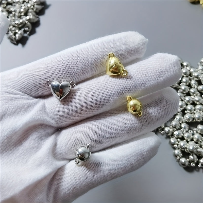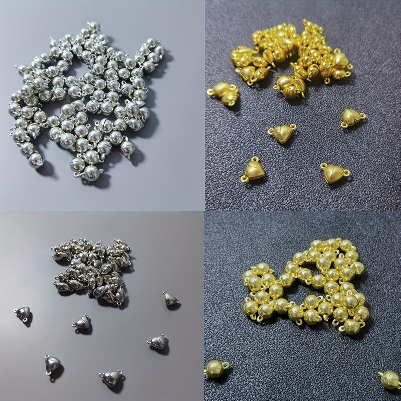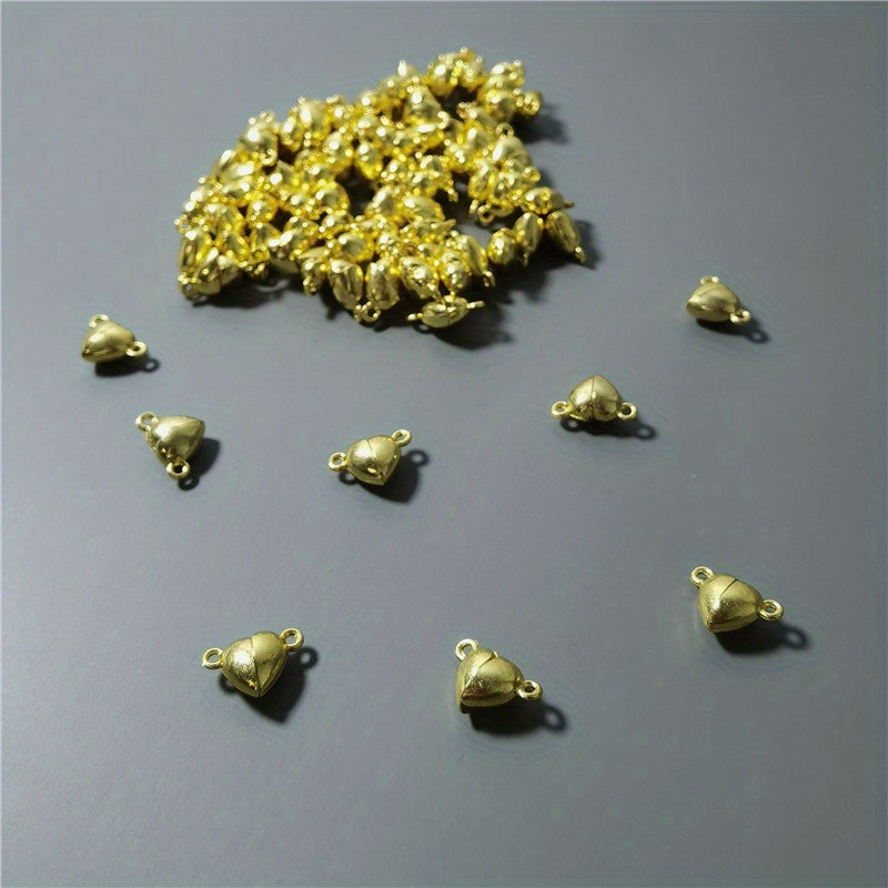 This set includes 10pcs of golden and silver heart-shaped magnet buckle pendants for DIY jewelry making. Craft beautiful accessories with these high-quality materials.