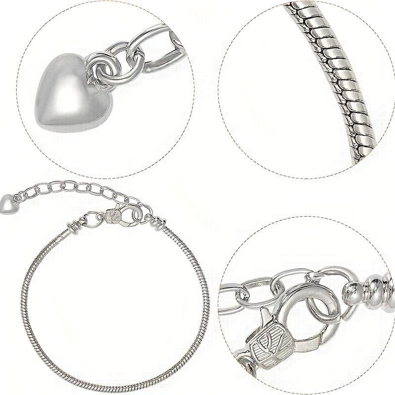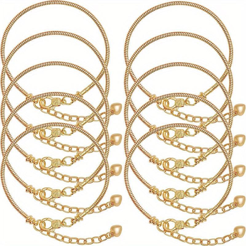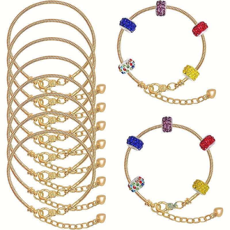 This set includes 10 snake bone chain bracelets in golden or silvery colors. Each bracelet features a heart-shaped lobster clasp, perfect for creating your own unique DIY bracelet designs.