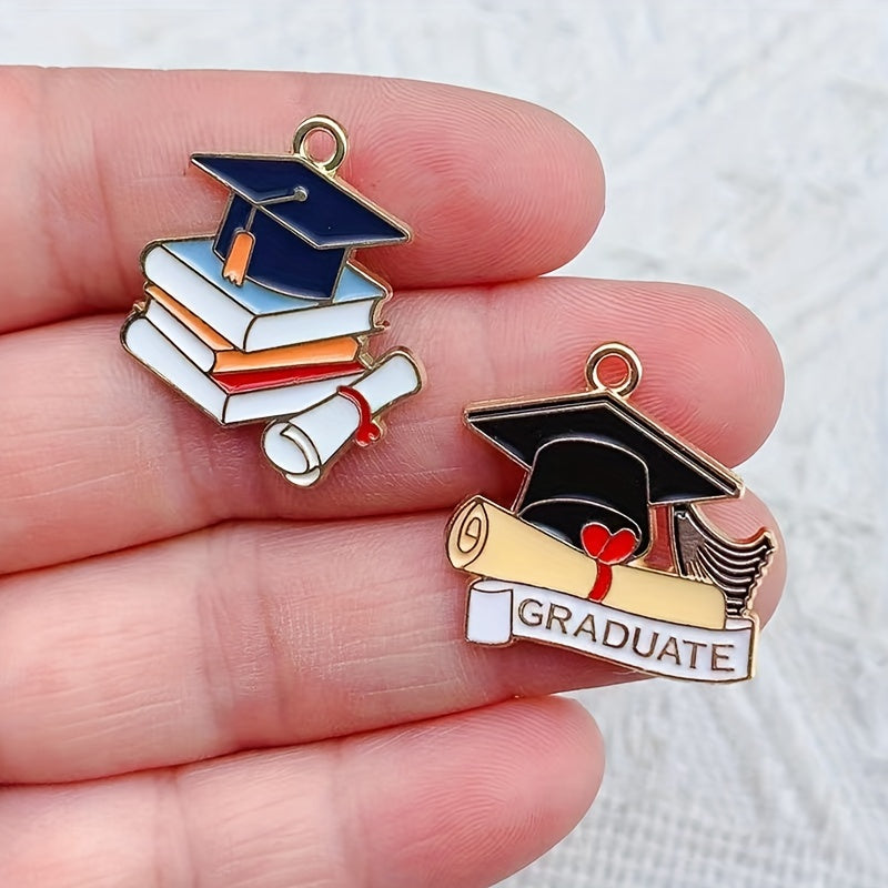 These cute cartoon graduation cap charms are perfect for creating earrings, necklaces, bracelets, and other art and craft projects.