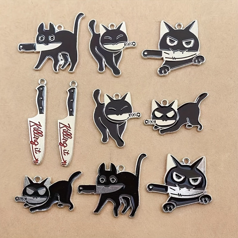 Get creative with these enamel pendants featuring Halloween cat designs. Perfect for making your own jewelry pieces.