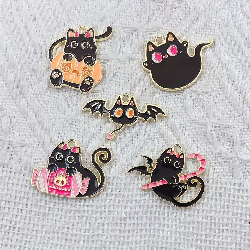 Explore the cat series with these Halloween-themed charms perfect for DIY jewelry. Add a spooky touch to earrings, bracelets, necklaces, and more!
