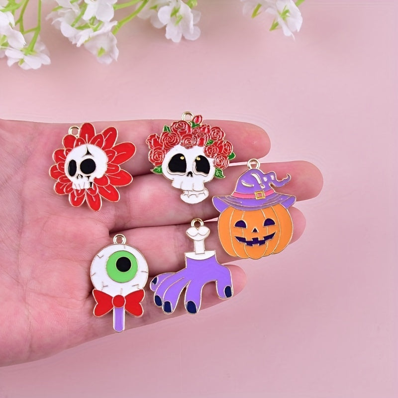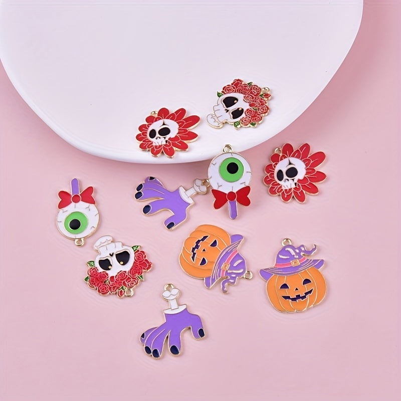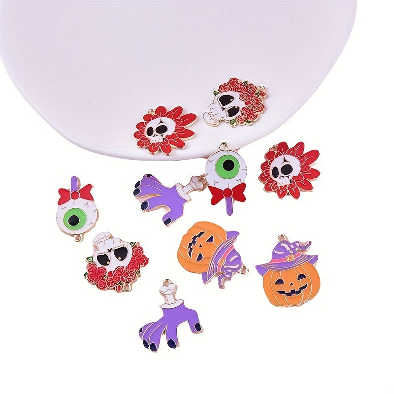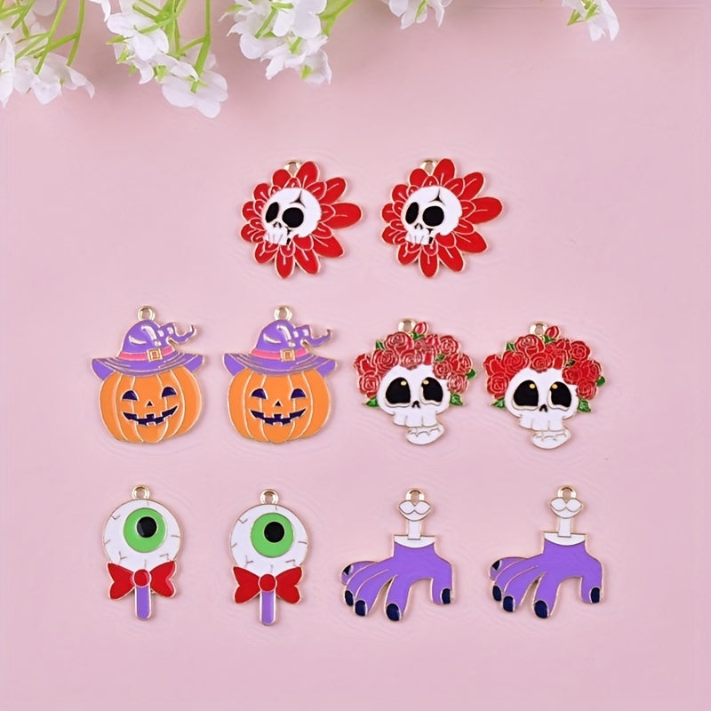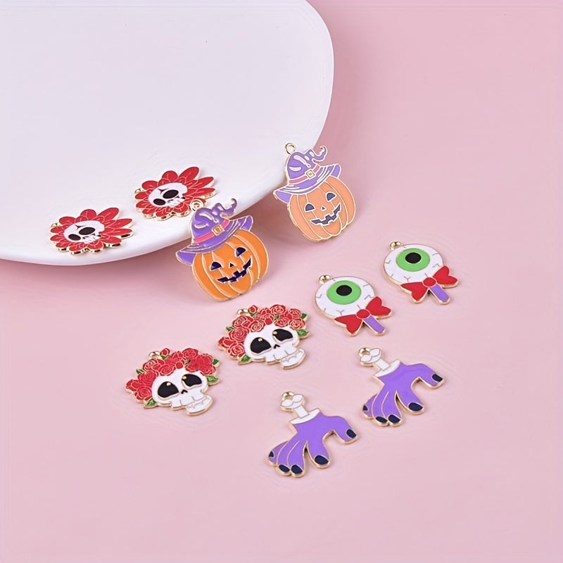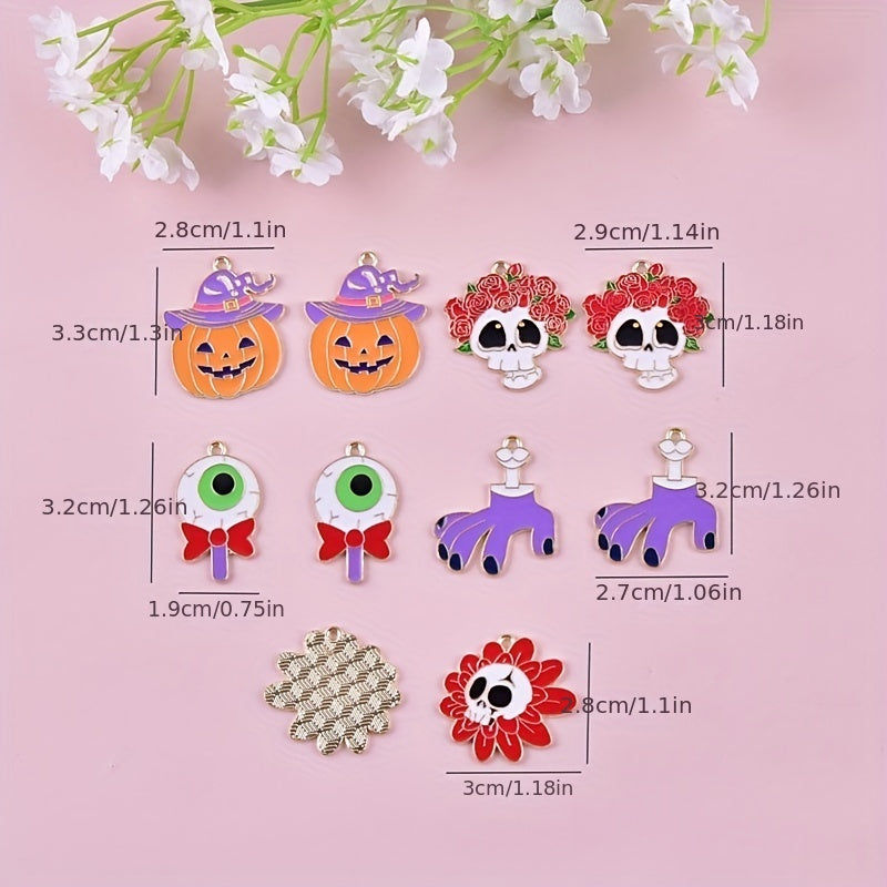 Get into the Halloween spirit with these spooky enamel eye, pumpkin, skull, and rose flower alloy pendant earrings and necklace DIY jewelry materials.