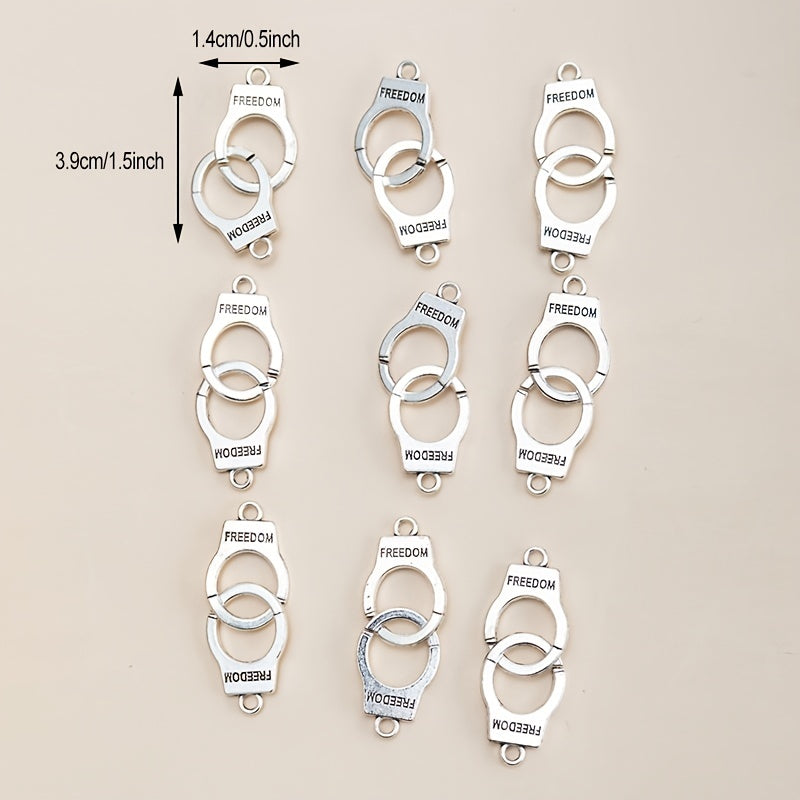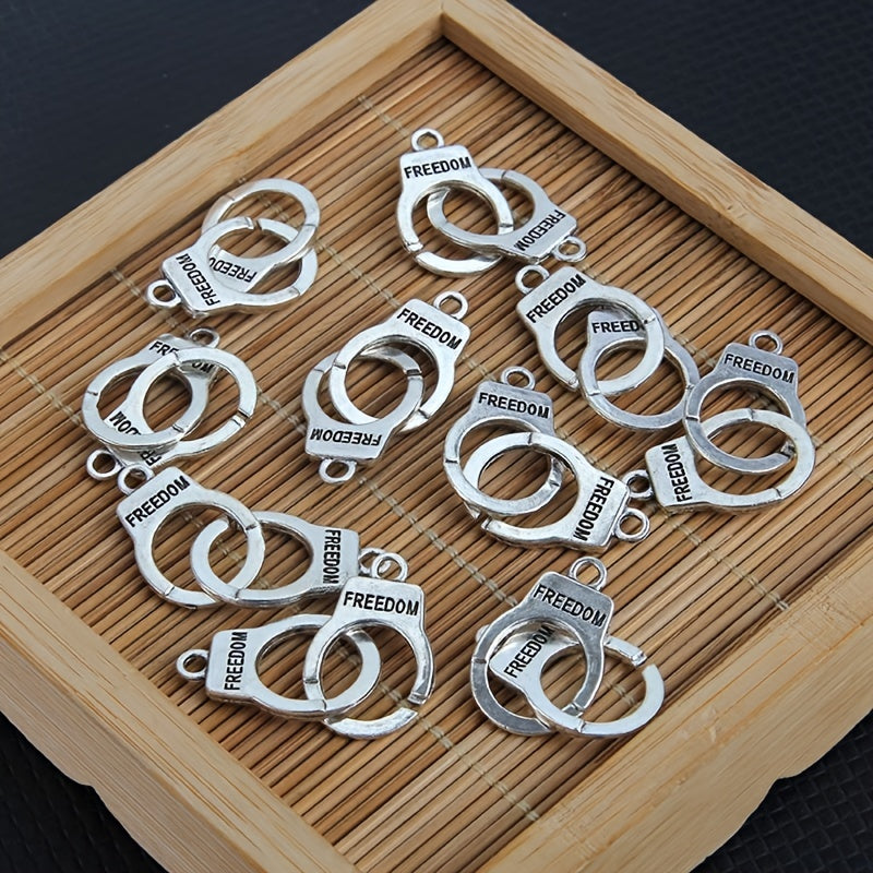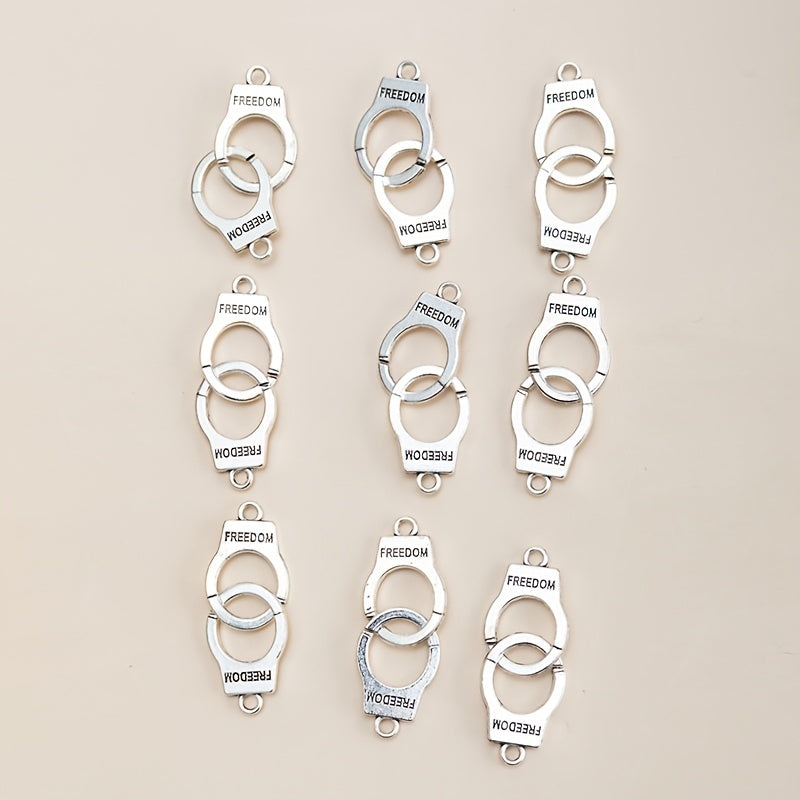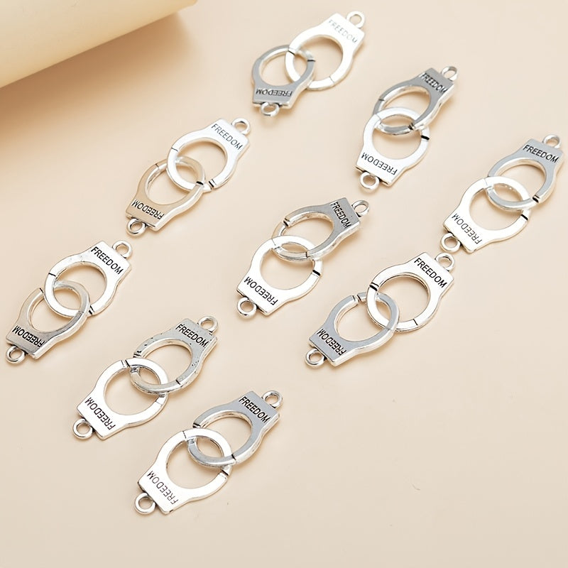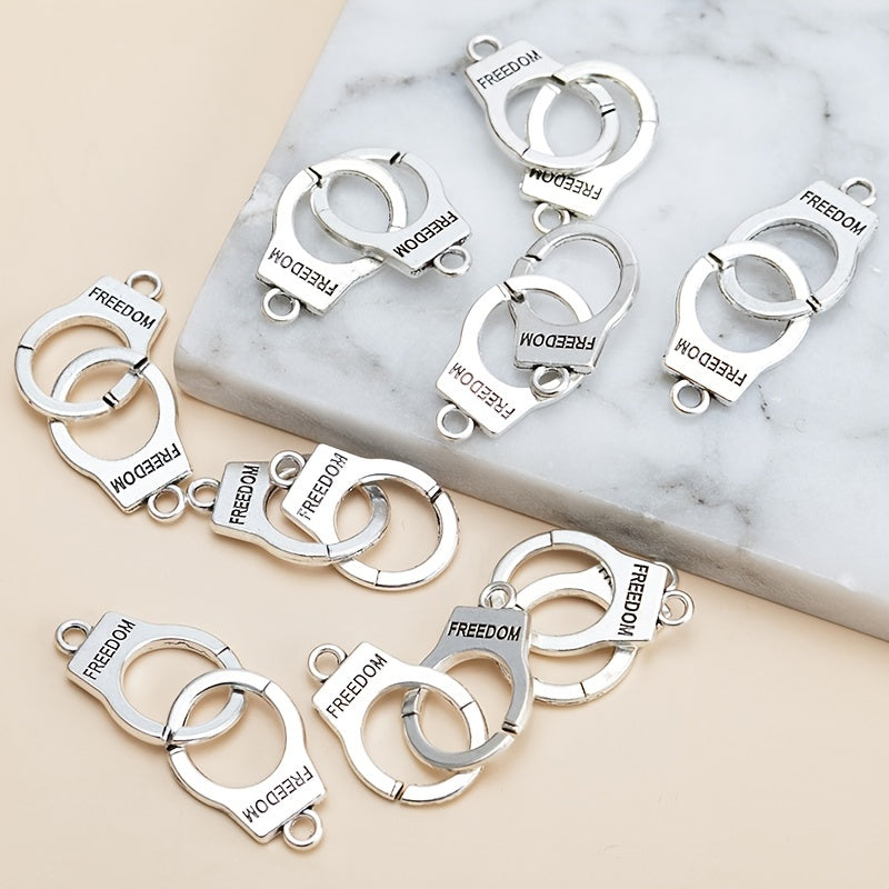 Vintage silvery DIY materials for making bracelets, earrings, or necklaces. These handcuff charms represent freedom and individuality.
