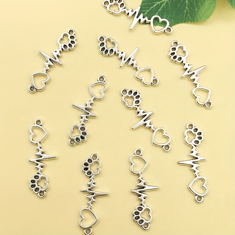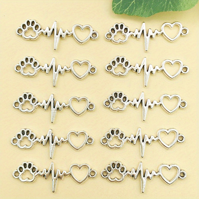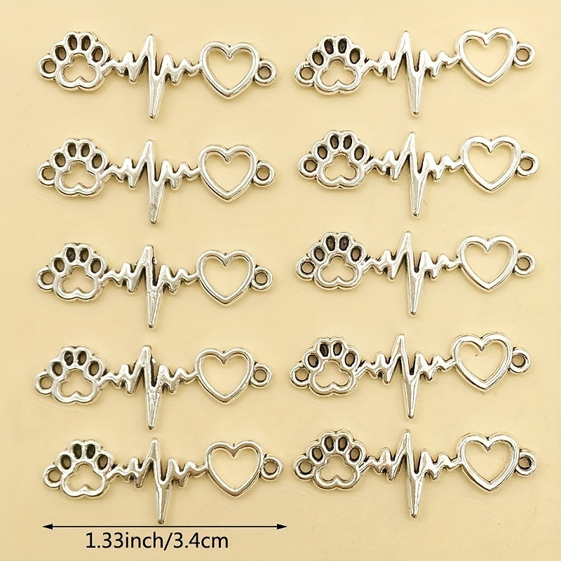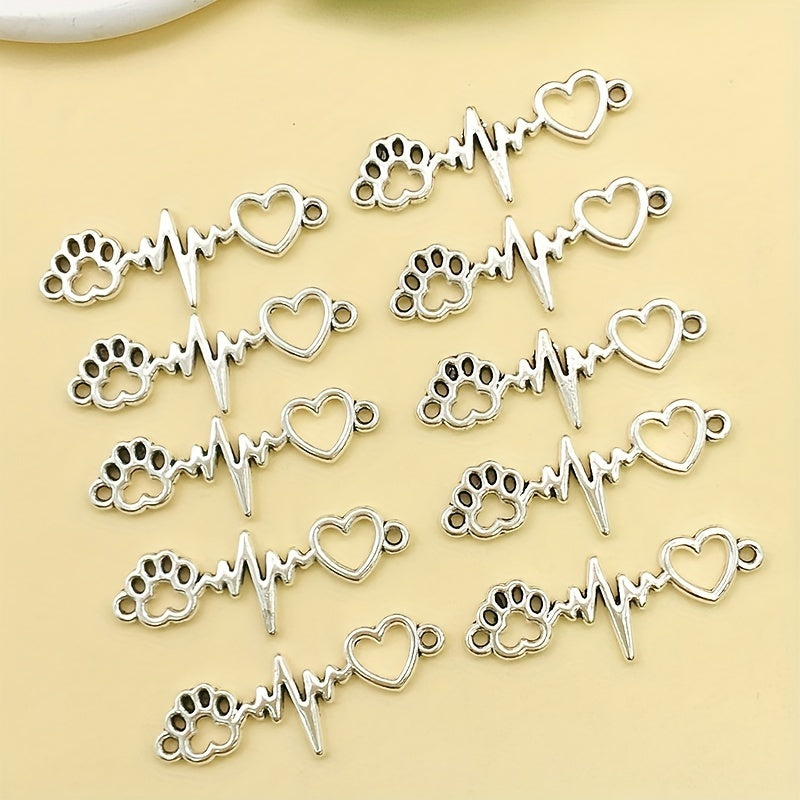 Enhance your jewelry-making projects with this 10-piece set of heart and paw charms. Made of zinc alloy, these charms are perfect for DIY necklaces, bracelets, and more.