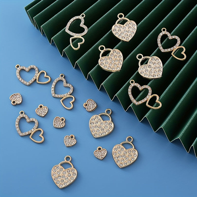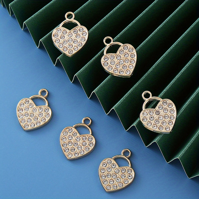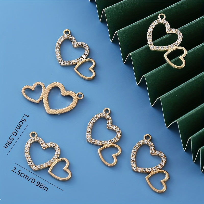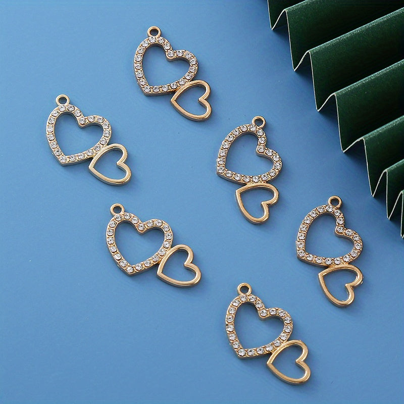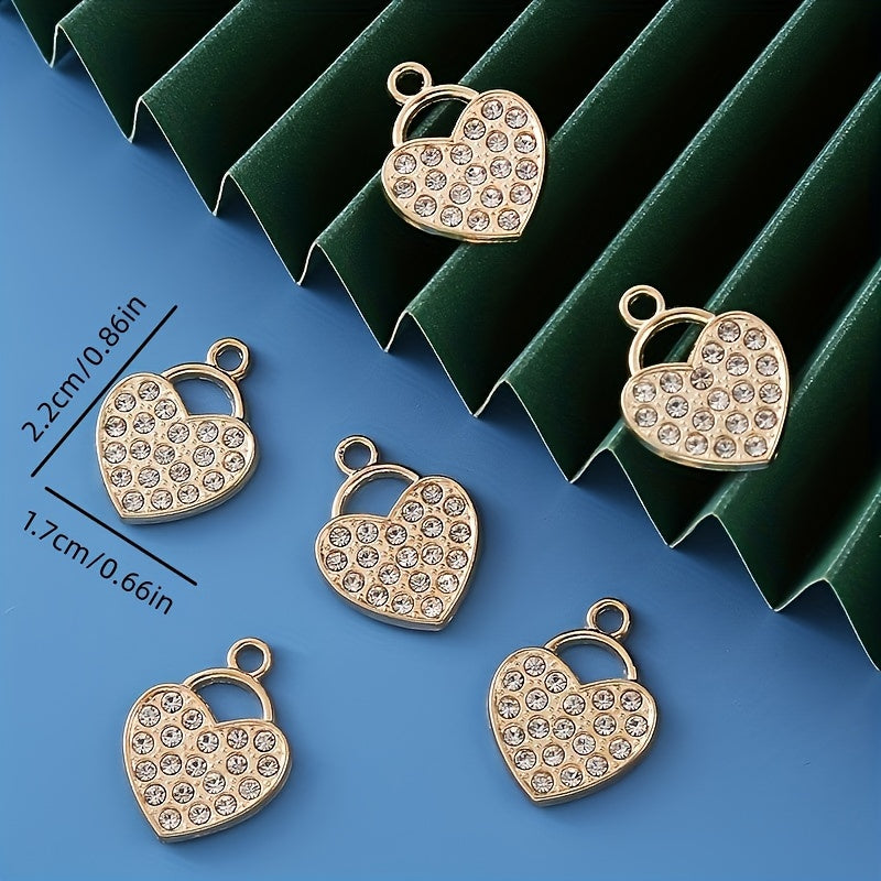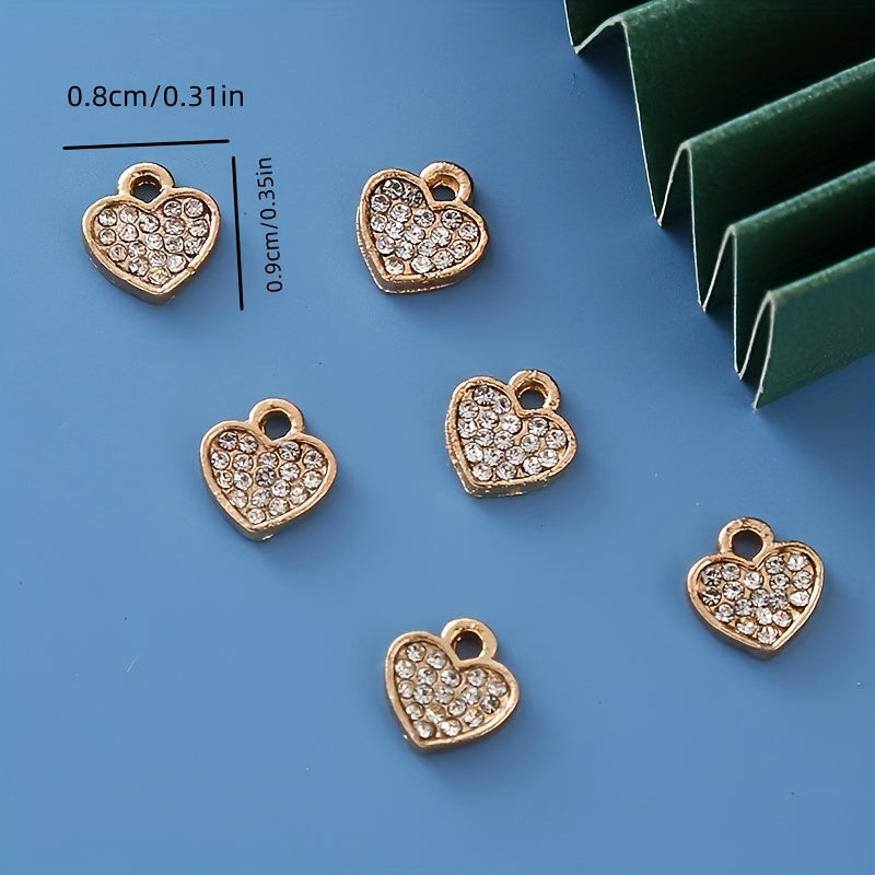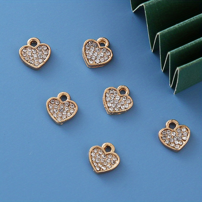 Add a touch of elegance to your DIY jewelry projects with these rhinestone decorated golden heart shape alloy pendants. Perfect for creating unique and stylish earrings, bracelets, and necklaces.