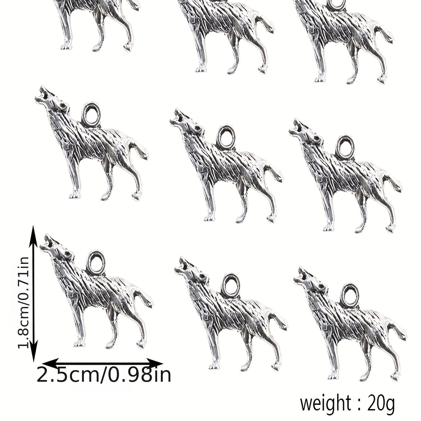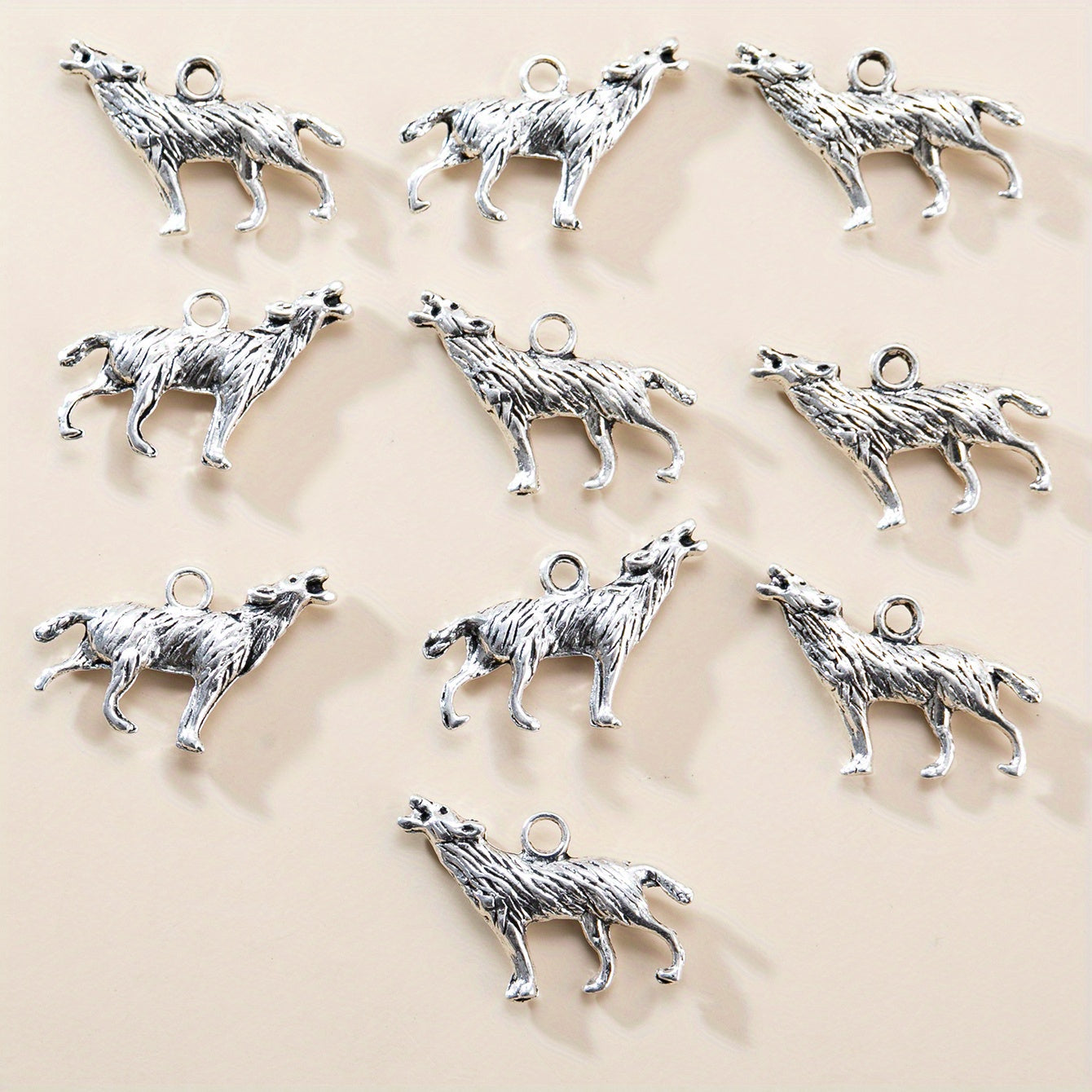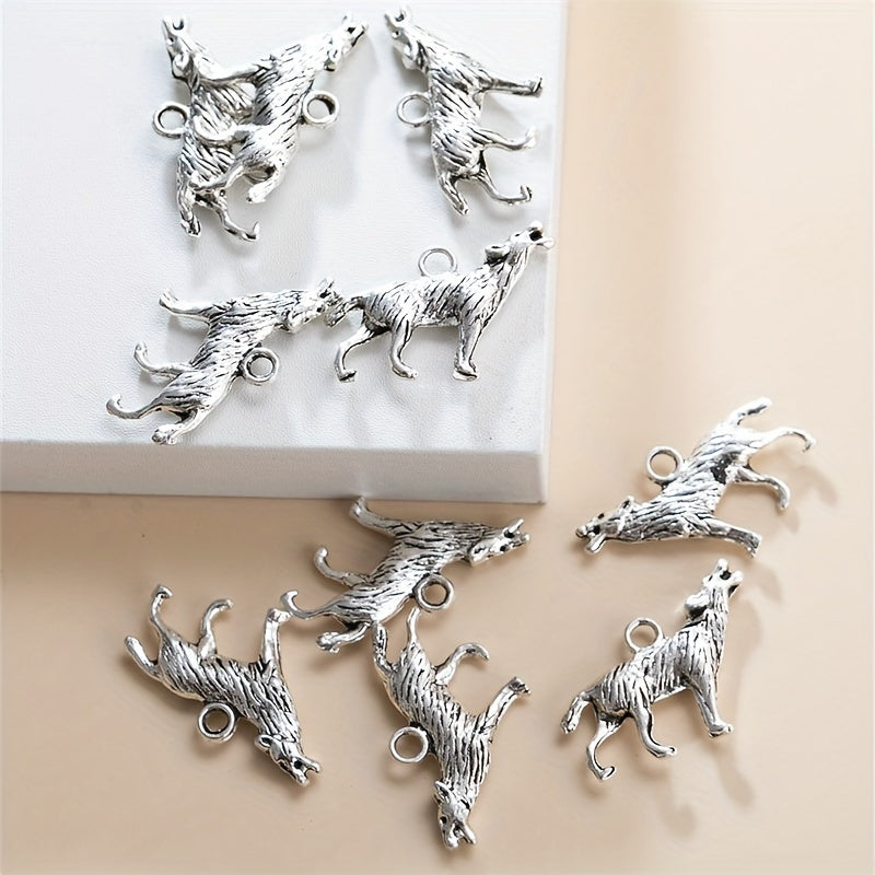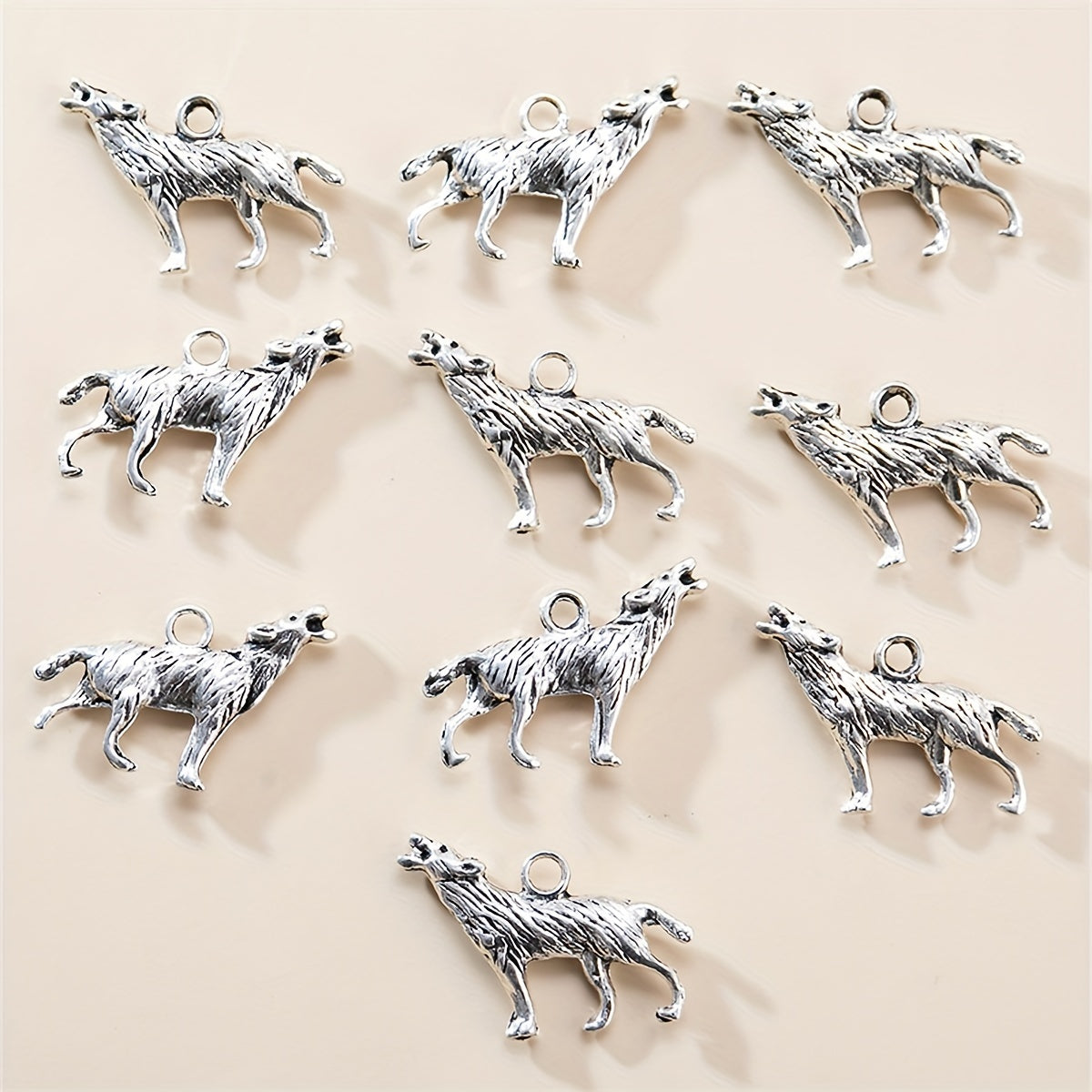 This pack includes 10pcs of antique silver howling wolf charms, perfect for jewelry making and DIY crafts.