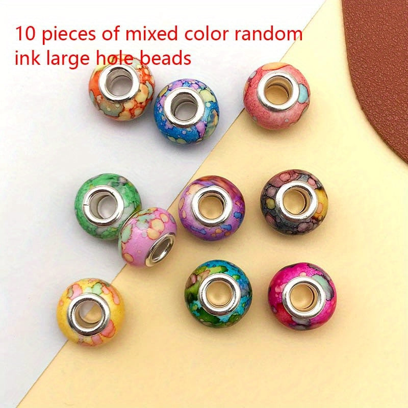 This set includes 10 large hole beads in assorted ink gradient colors, perfect for making your own bracelets and necklaces. These beads are great for jewelry making projects.