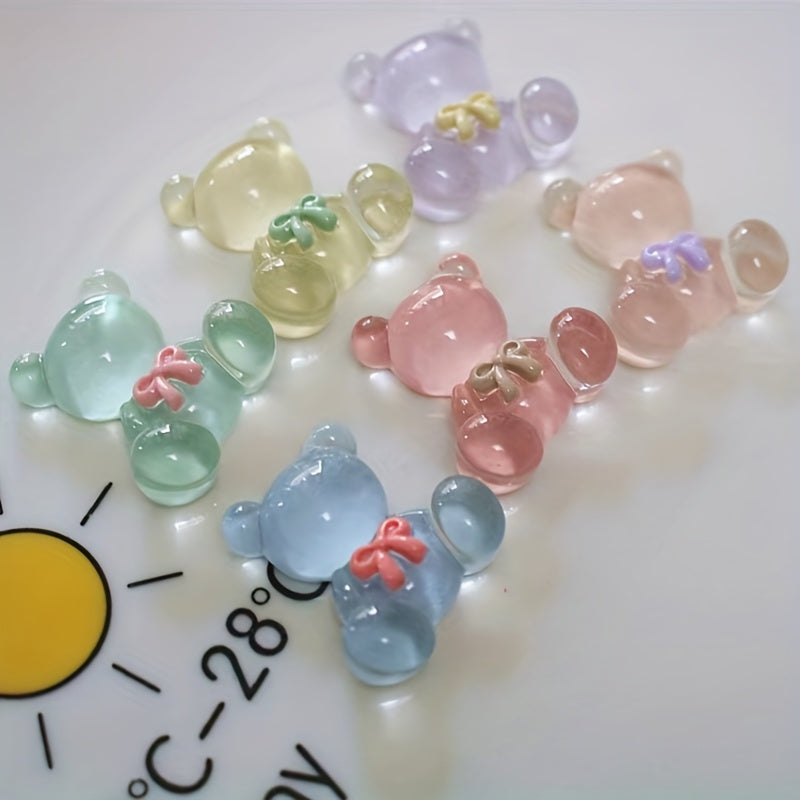 Get this 10-piece set of jelly transparent bear beads for various DIY projects. Perfect for creating cartoon hair accessories, mobile phone cases, key chains, cups decorations, shoes embellishments, and refrigerator magnets.