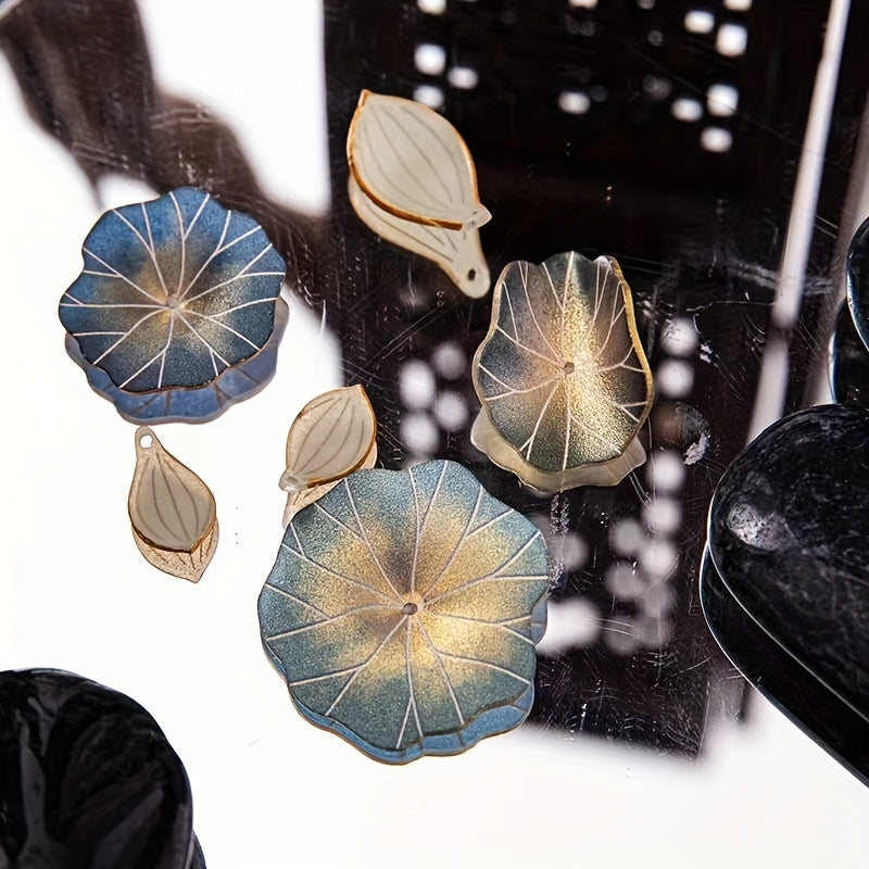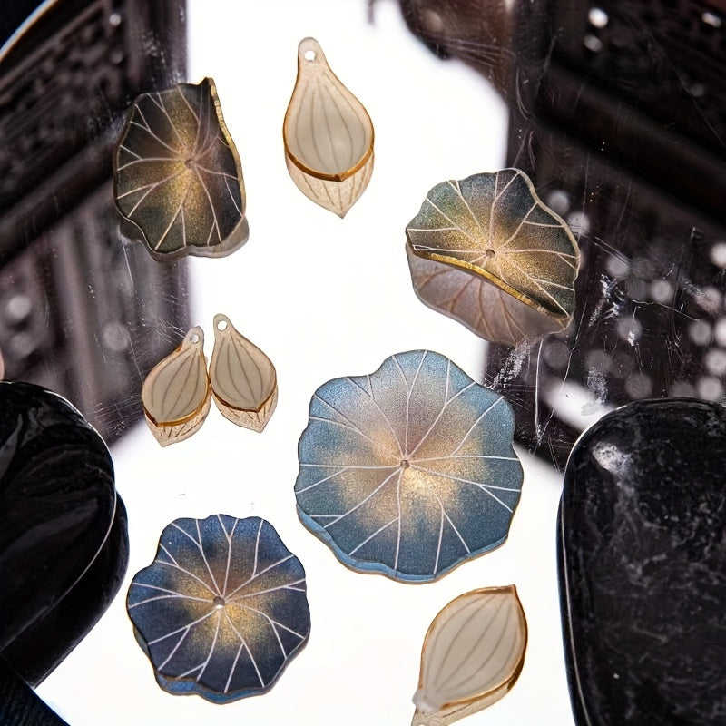 This set includes 10 acrylic pendants with a golden lotus leaf pattern, perfect for DIY jewelry making projects. Add a touch of elegance to your hairpins, headwear, or other accessories.