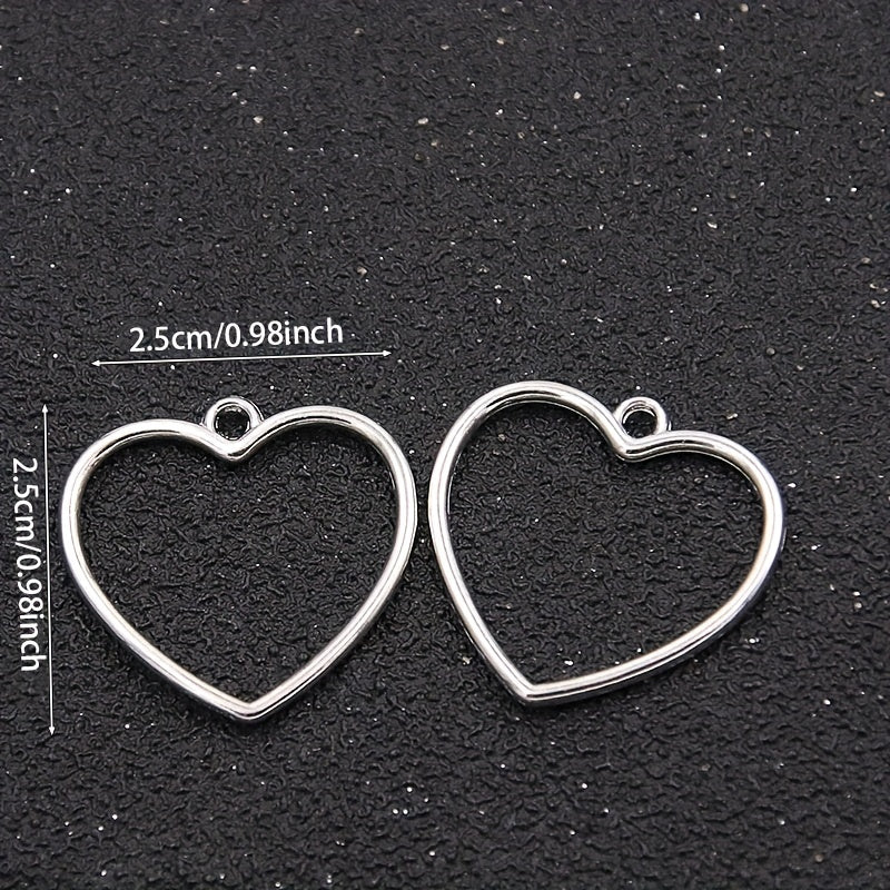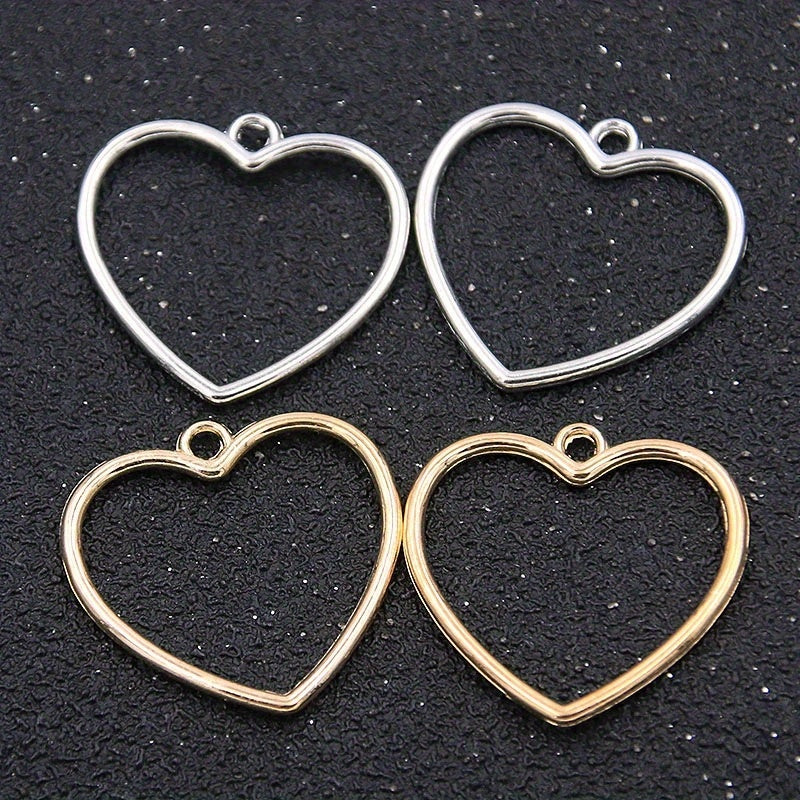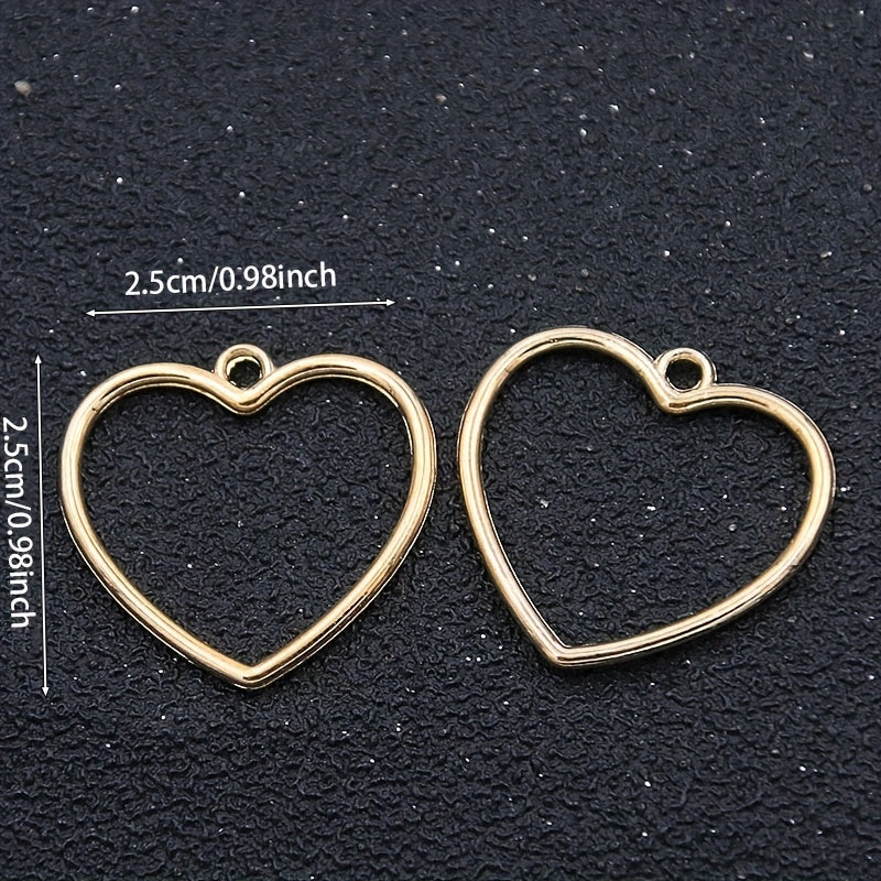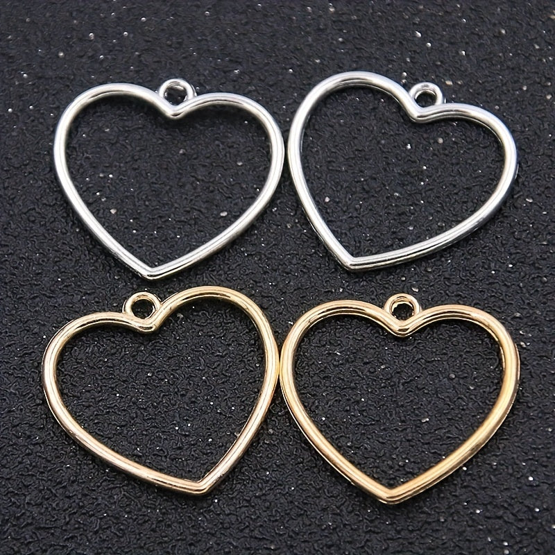 This set includes 10 golden and silver alloy heart charms that can be used to create earrings, bracelets, and necklaces.