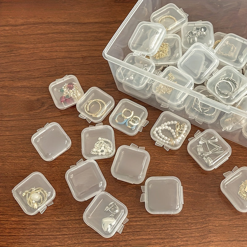 Keep your earrings, rings, necklaces, bracelets, earbuds, and fish hooks organized with these plastic storage boxes. The transparent design allows you to easily see and access your items.