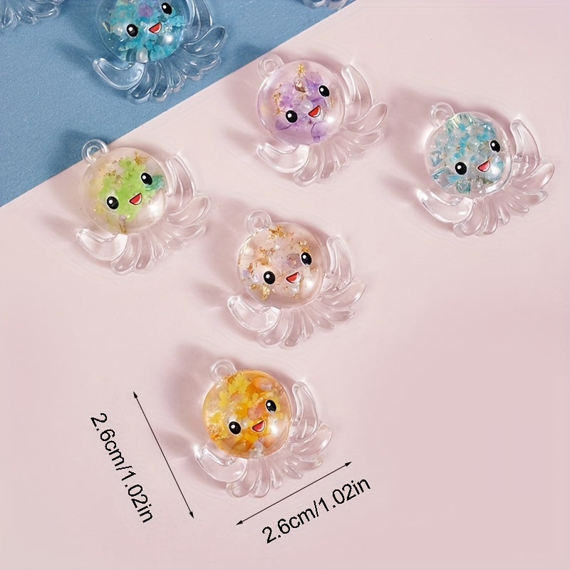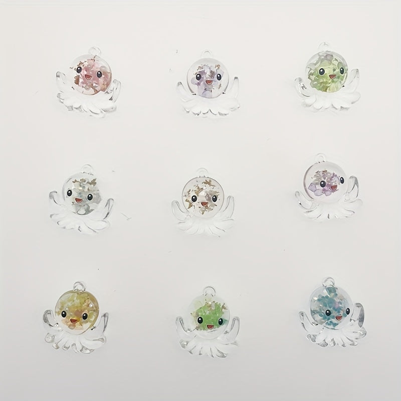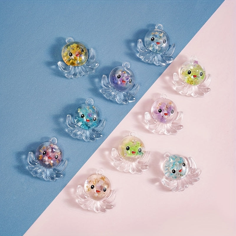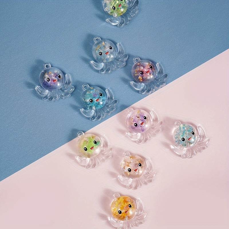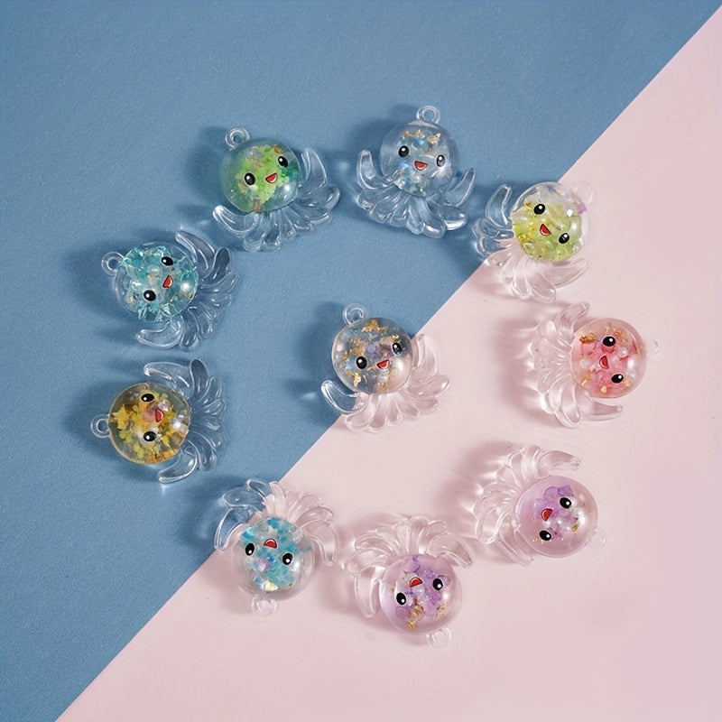 Get this pack of 10 mixed acrylic fluorescent octopus accessories for creating unique jewelry pieces like necklaces, earrings, mobile phone chains, and keychains.