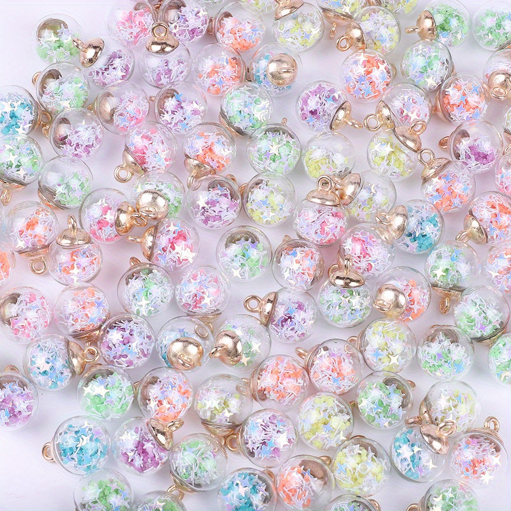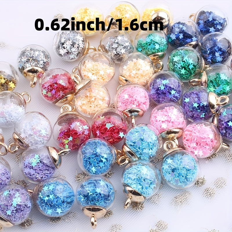 Add a pop of color to your jewelry designs with this set of 10 mixed antique glass ball charms. Each charm comes with tiny star beads for added detail. Perfect for creating necklaces, bracelets, and earrings.