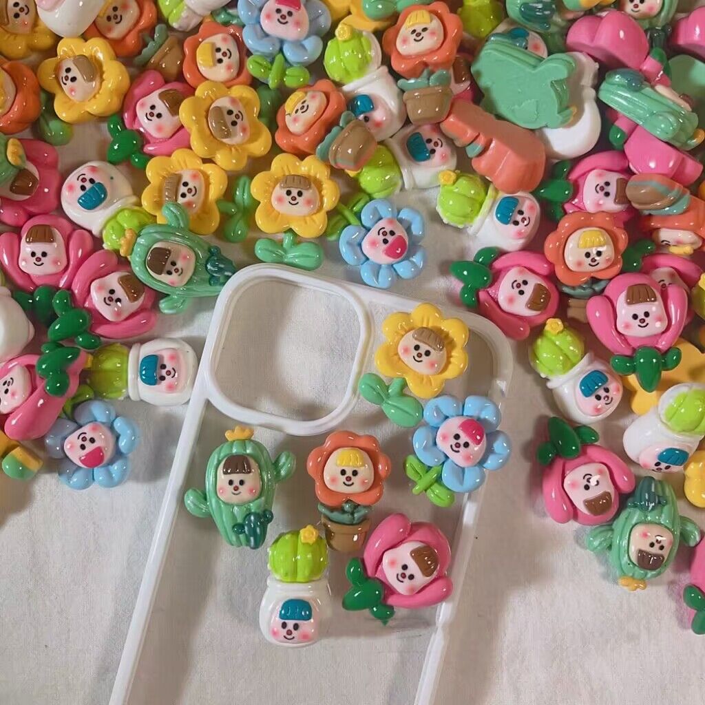 These adorable resin charms featuring cartoon baby faces, flowers, and potted plants are perfect for DIY projects. Use them to embellish hair clips, phone cases, photo frames, wall decorations, and scrapbooks.