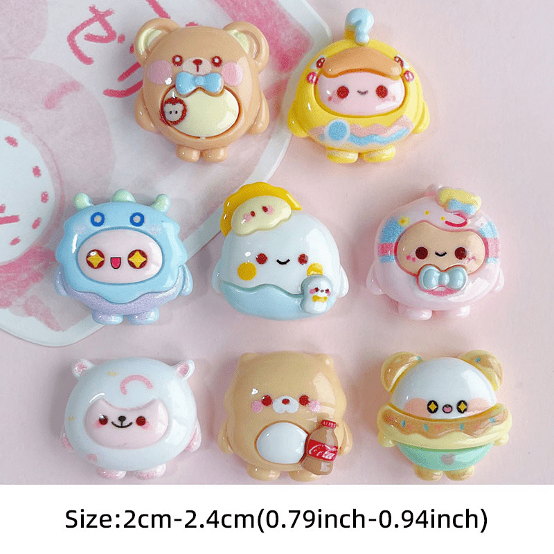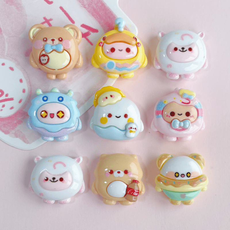 This set includes 10 mixed cartoon DIY glue resin flat back materials suitable for making jewelry, hair clips, and pendants.