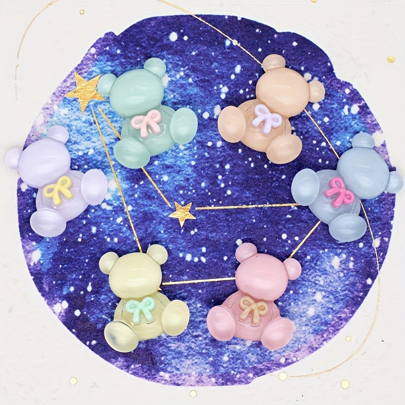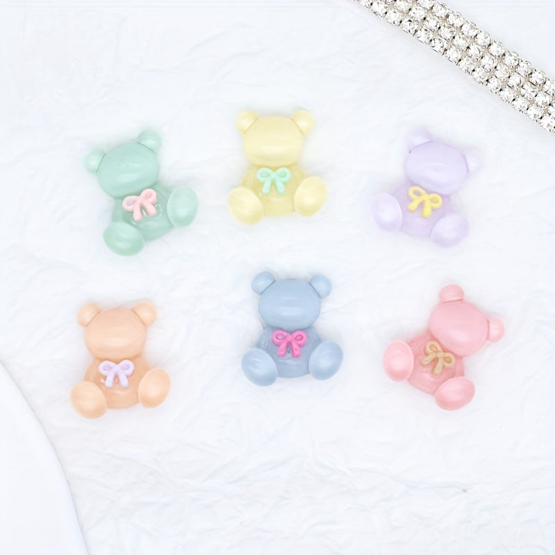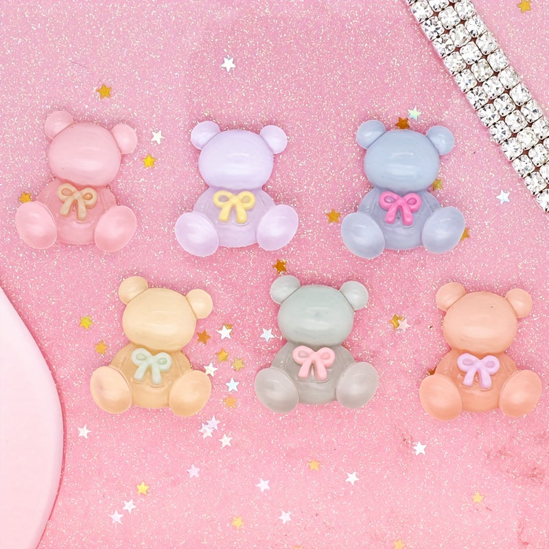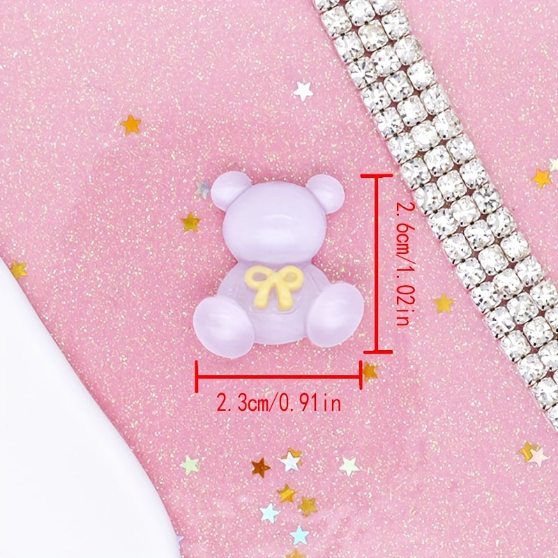 Add a touch of charm to your projects with these colorful transparent bow bear resin charms. Ideal for DIY hair clips, phone cases, photo frame embellishments, wall decorations, and scrapbooking.