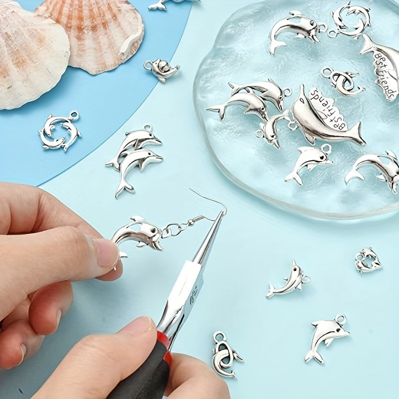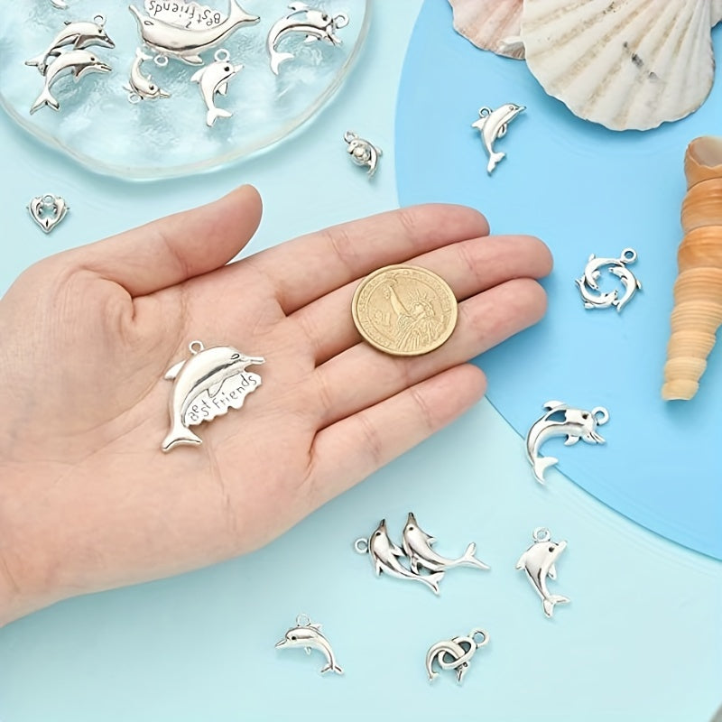 Get creative with this set of 10 mixed style marine dolphin series alloy pendants perfect for DIY necklace, bracelet, and earring crafts.