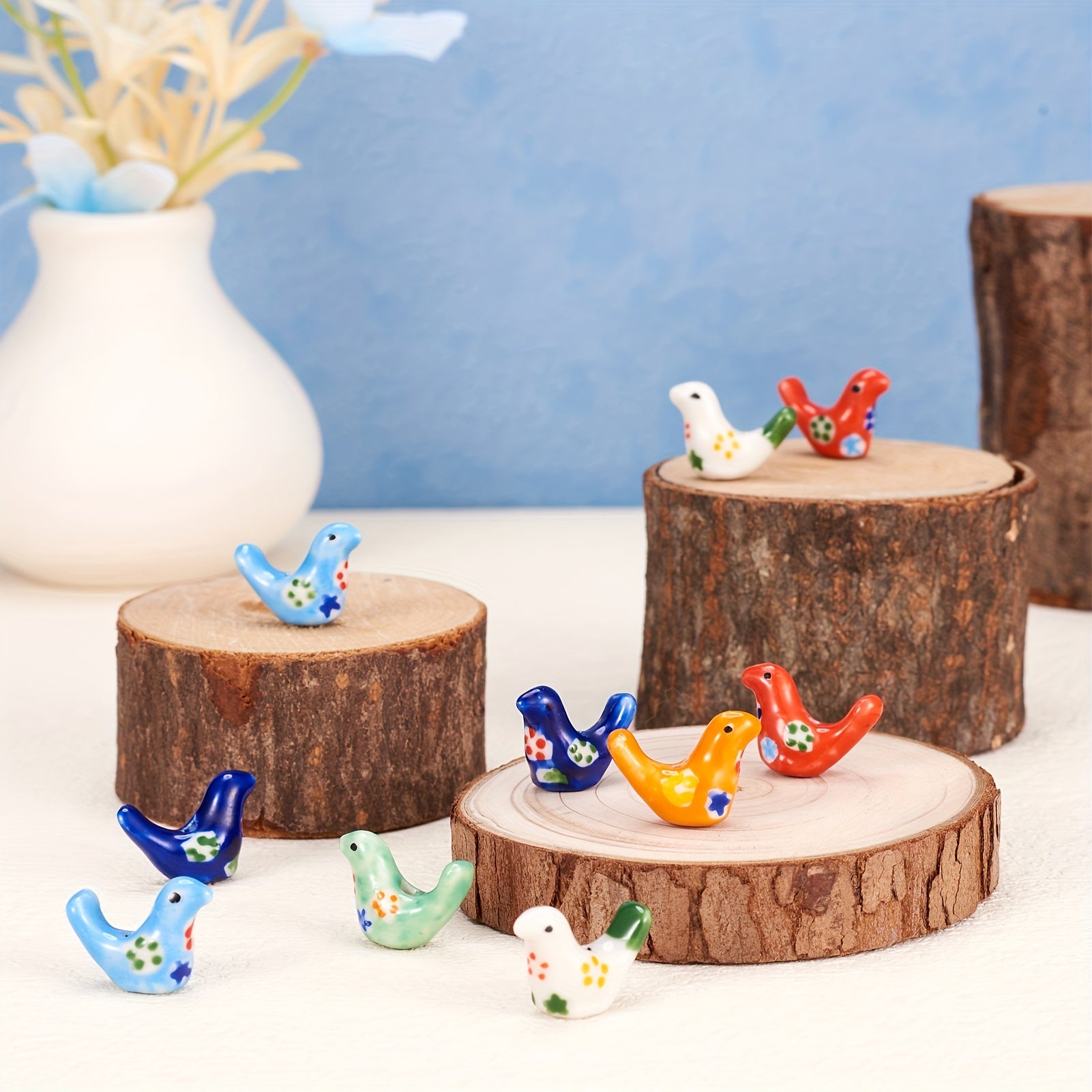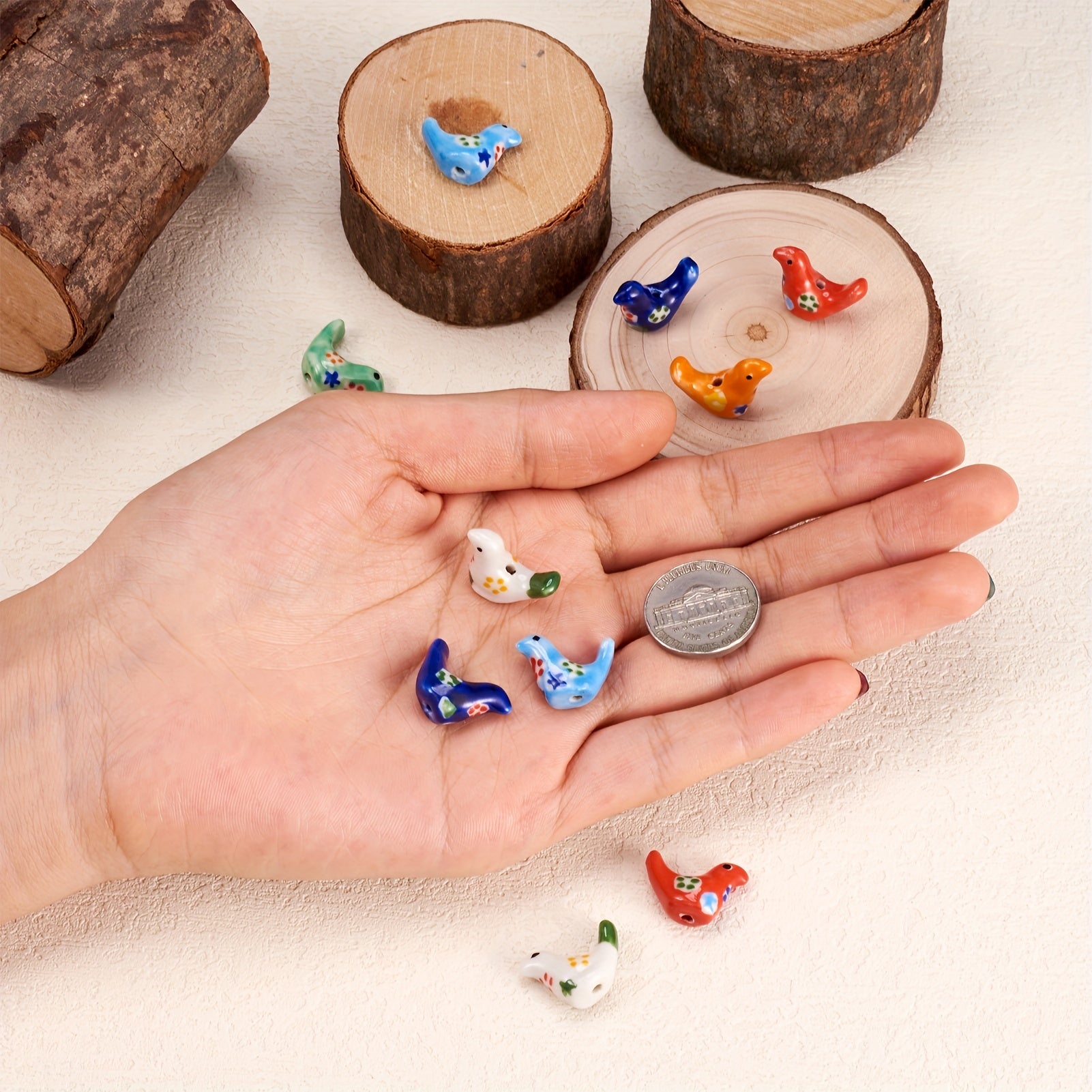 Create your own unique jewelry pieces with these 10 mixed porcelain pigeon beads. Perfect for necklaces, bracelets, and earrings.